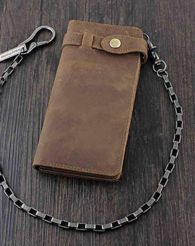 Design: Badass Brown Leather Men's Long Biker Chain Wallet Black Long Wallet with Chain For Men