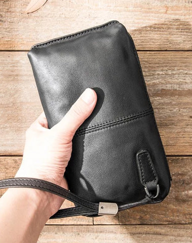 Style: Black Cool Leather Mens 8 inches Long Zipper Clutch Wallet Long Wallet Phone Bag for Men