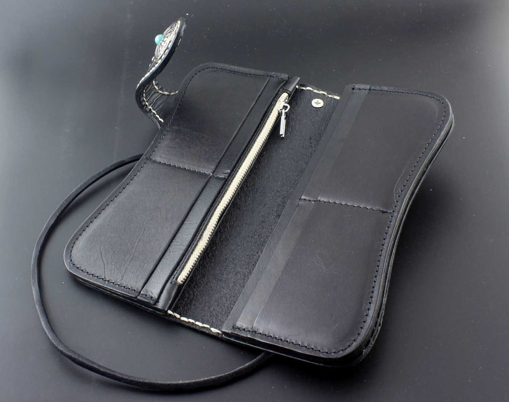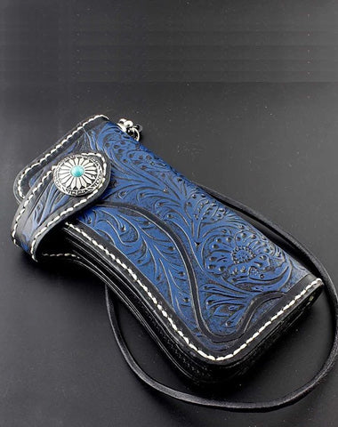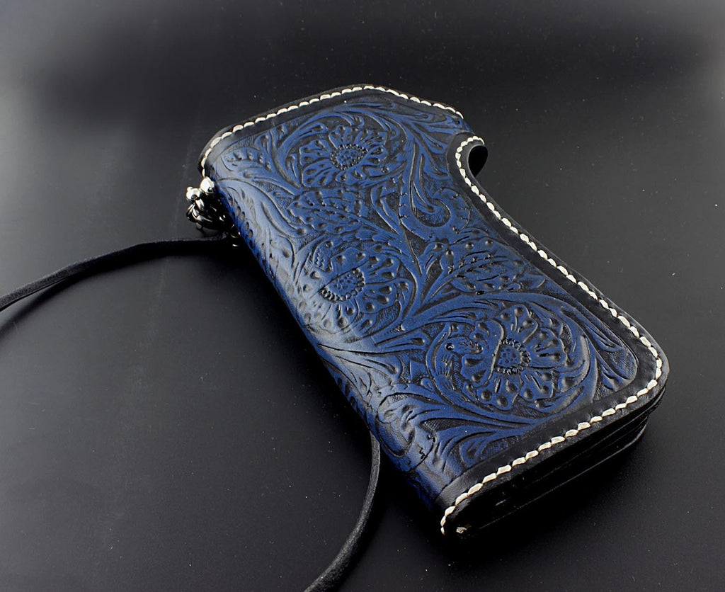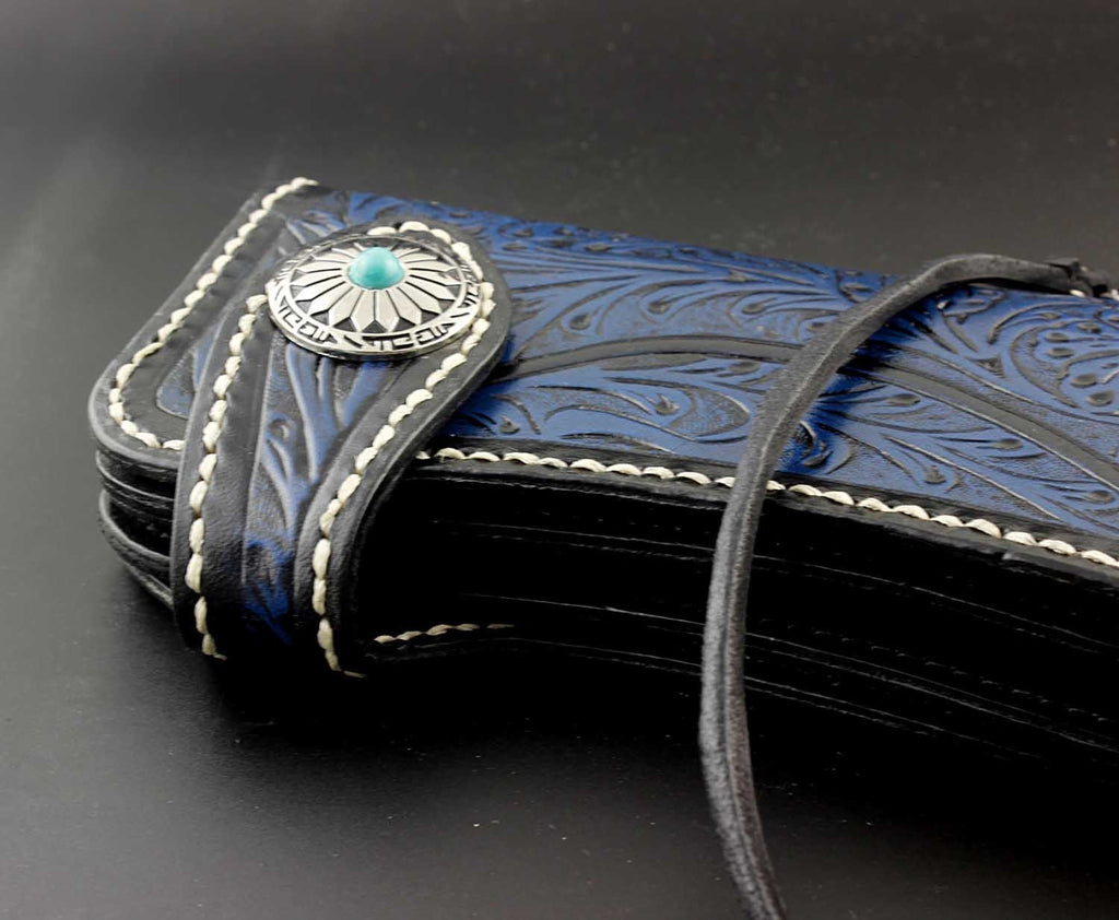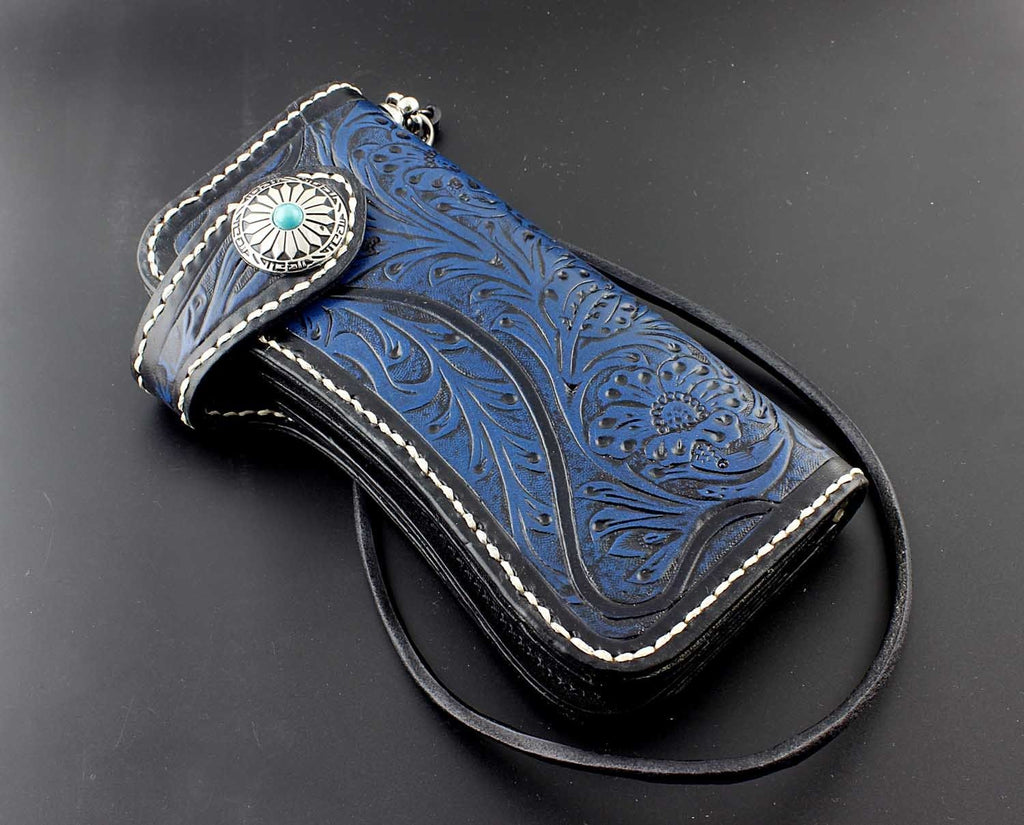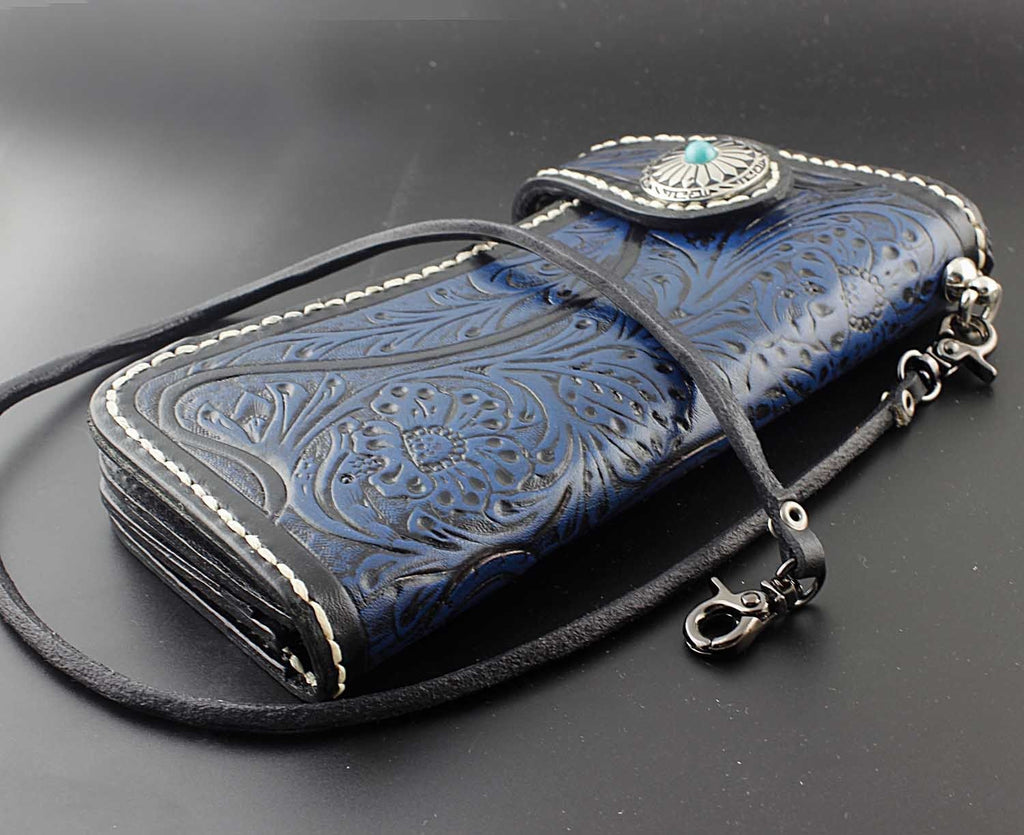 Style: Tooled Handmade Blue Leather Men's Chain Wallet Motorcycle Wallet Long Wallet with Chain For Men
