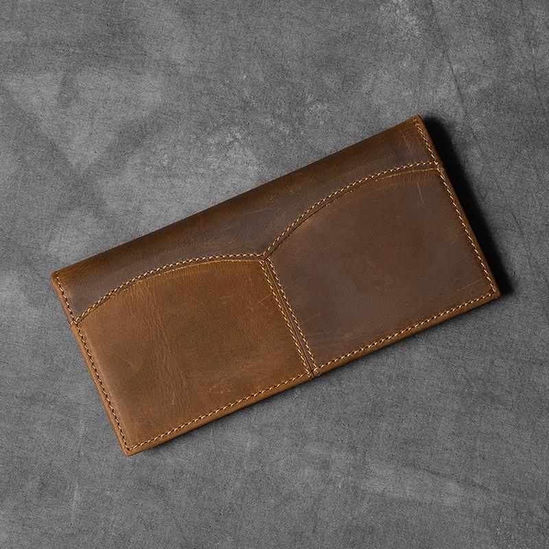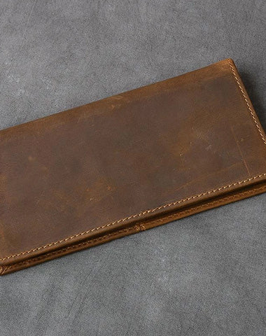 Style: Vintage Brown Leather Mens Bifold Long Wallet Long Bifold Card Wallet For Men
