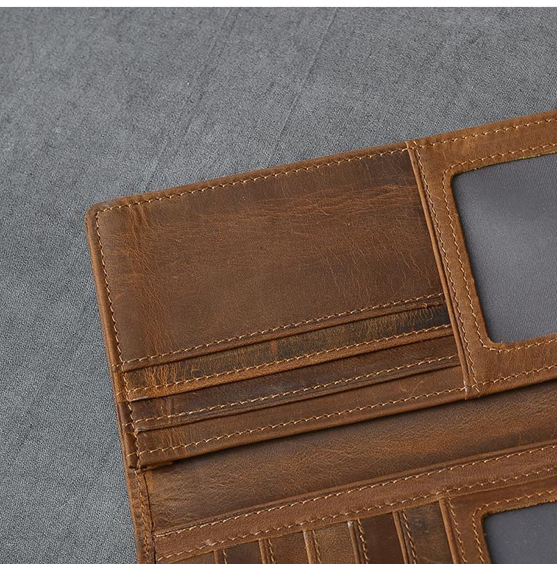 Vintage Brown Leather Mens Bifold Long Wallet Long Bifold Card Wallet For Men