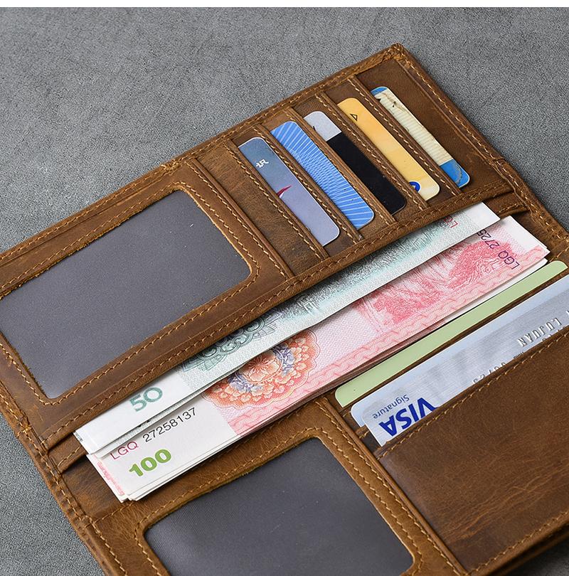 Design: Vintage Brown Leather Mens Bifold Long Wallet Long Bifold Card Wallet For Men