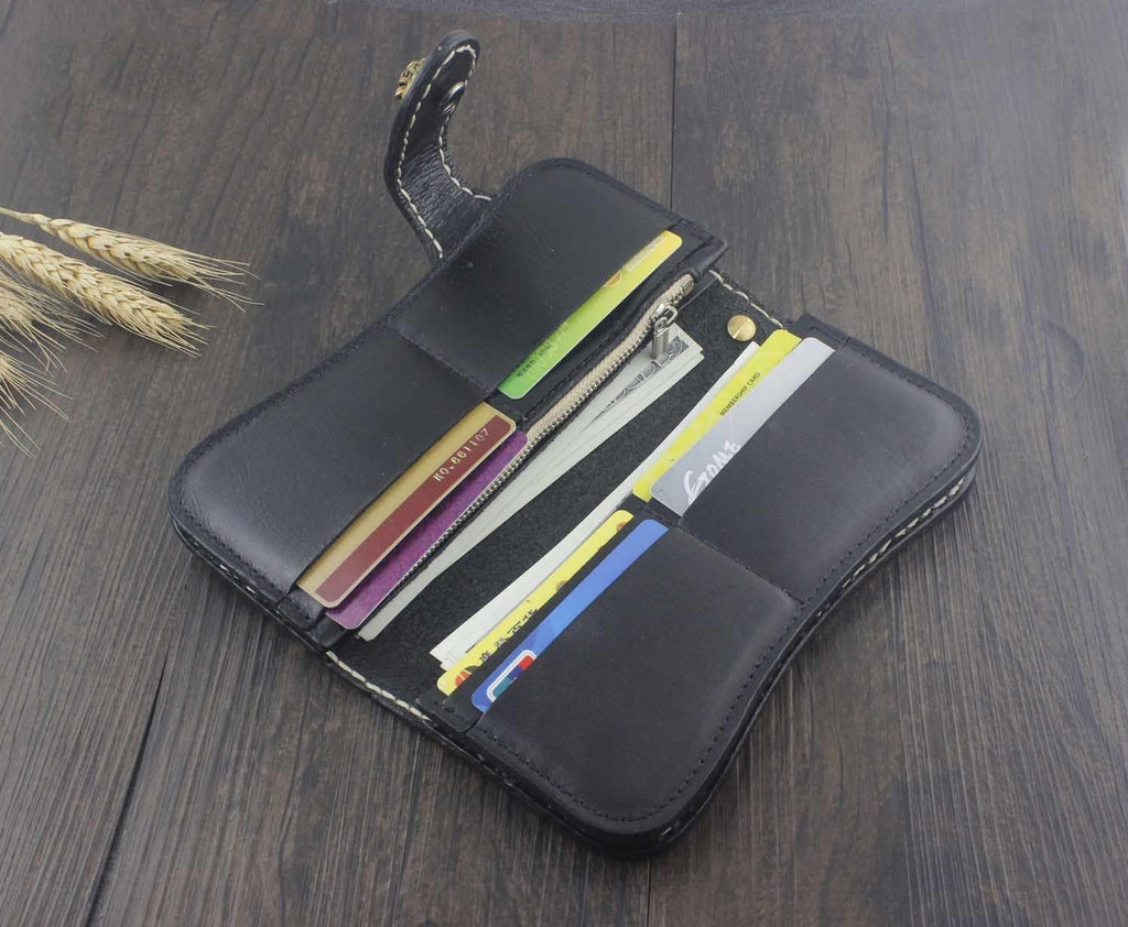 Style: Handmade Tooled Leather Men's Biker Wallet Motorcycle Wallet Long Wallet with Chain For Men