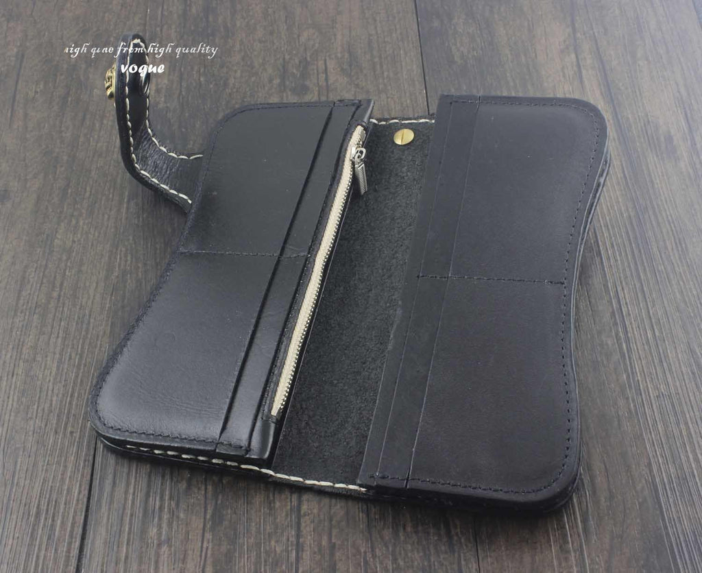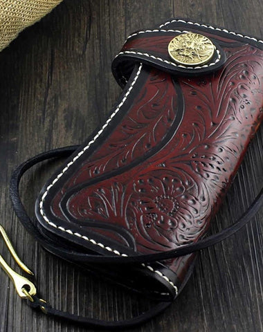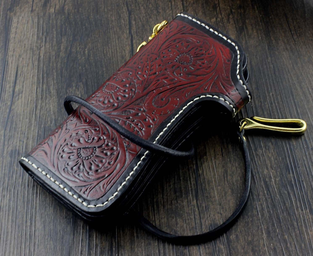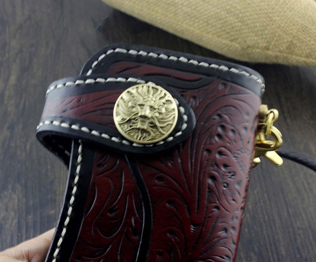 Design: Handmade Tooled Leather Men's Biker Wallet Motorcycle Wallet Long Wallet with Chain For Men