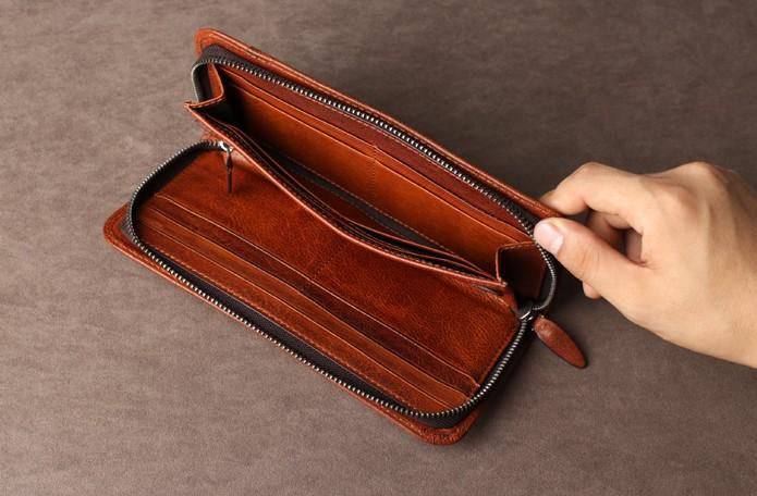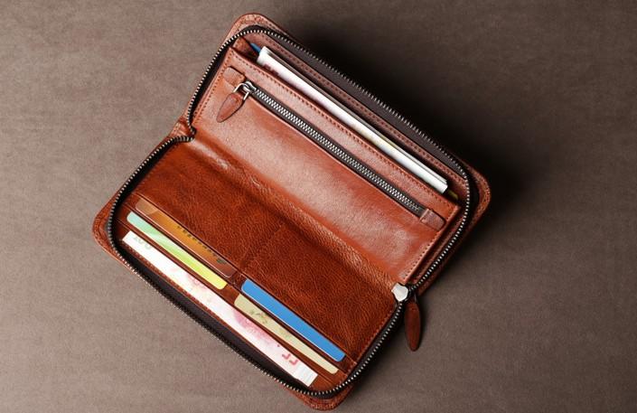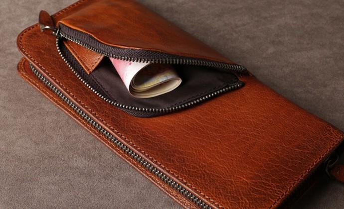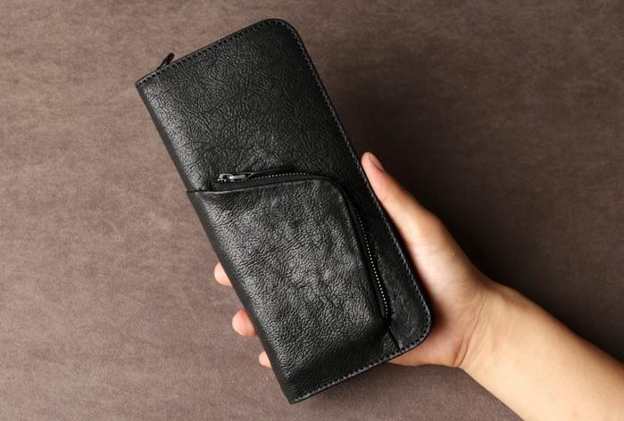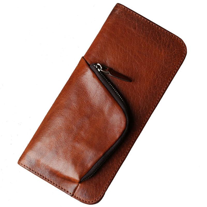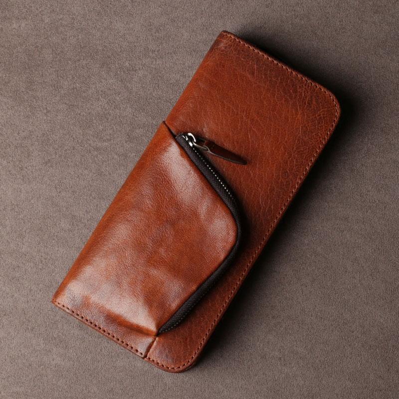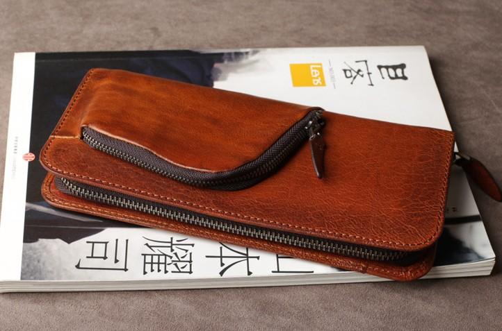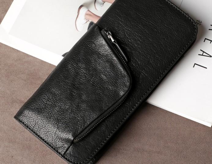 Design: Genuine Leather Mens Cool Long Leather Wallet Cards Phone Zipper Clutch Wristlet Wallet for Men