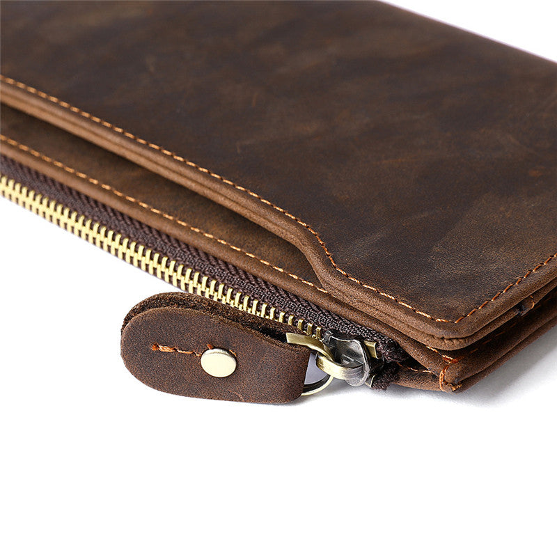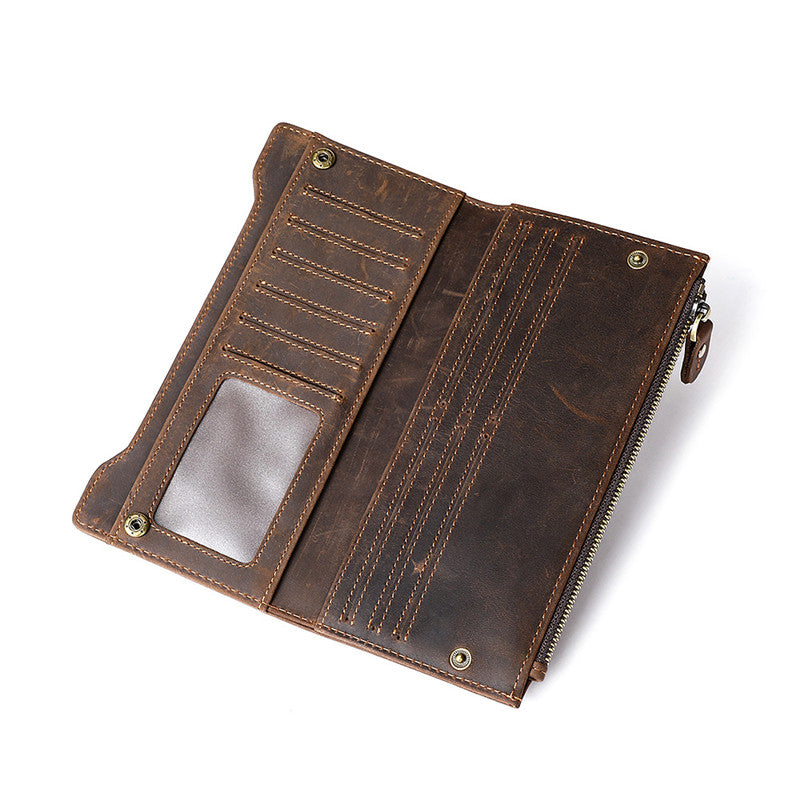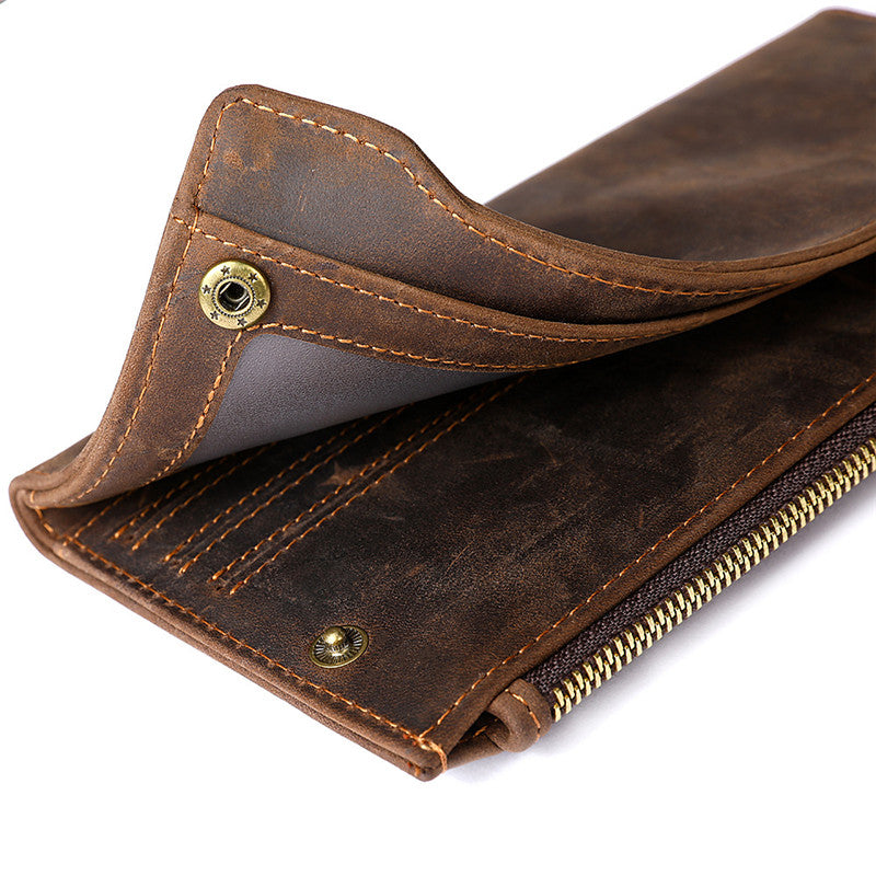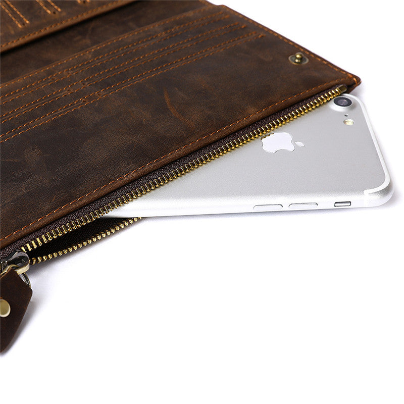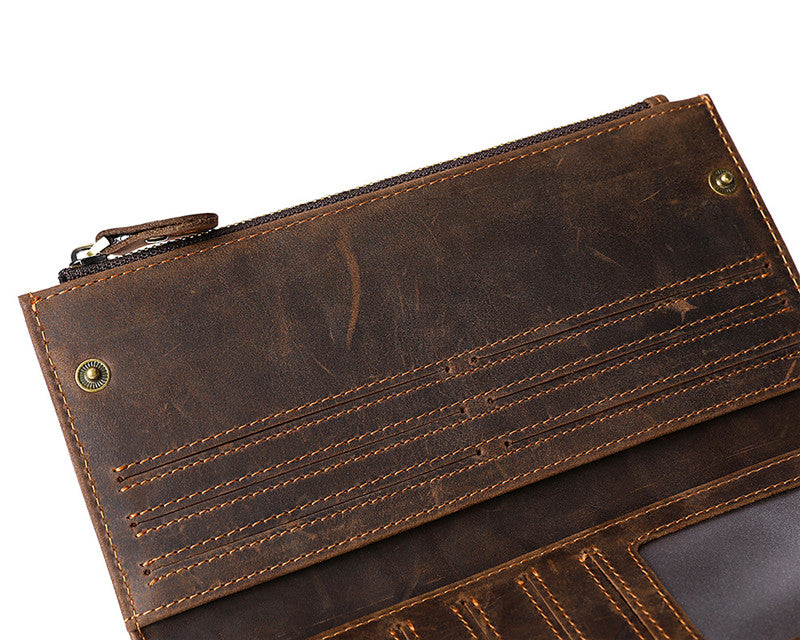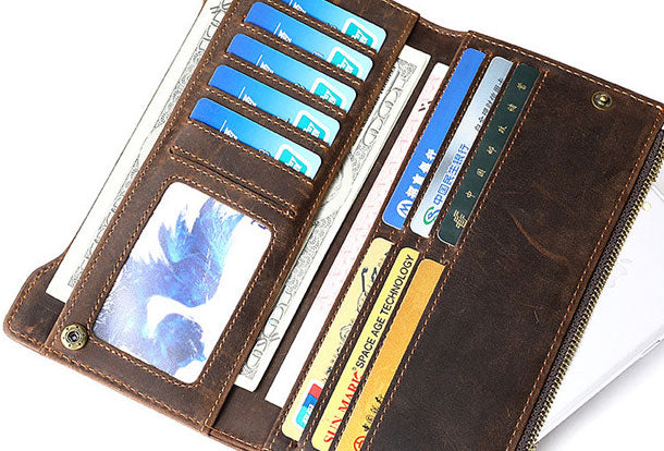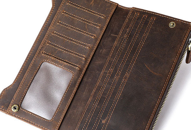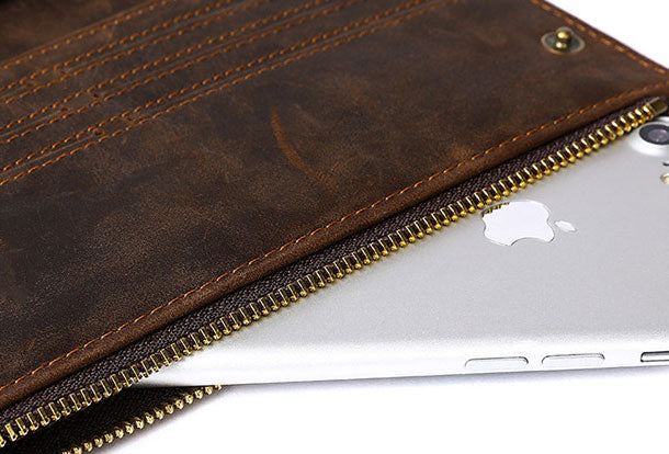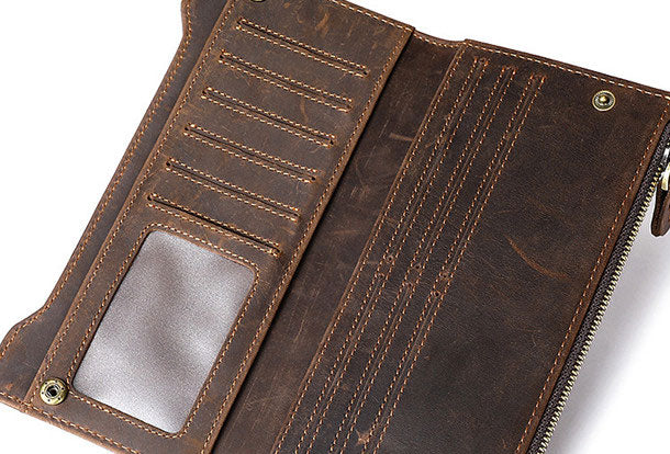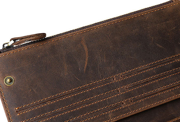Design: Leather Long wallets for Men Wallet Vintage Zipper Credit Cards Wallet for Men Bifold