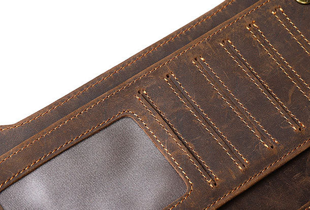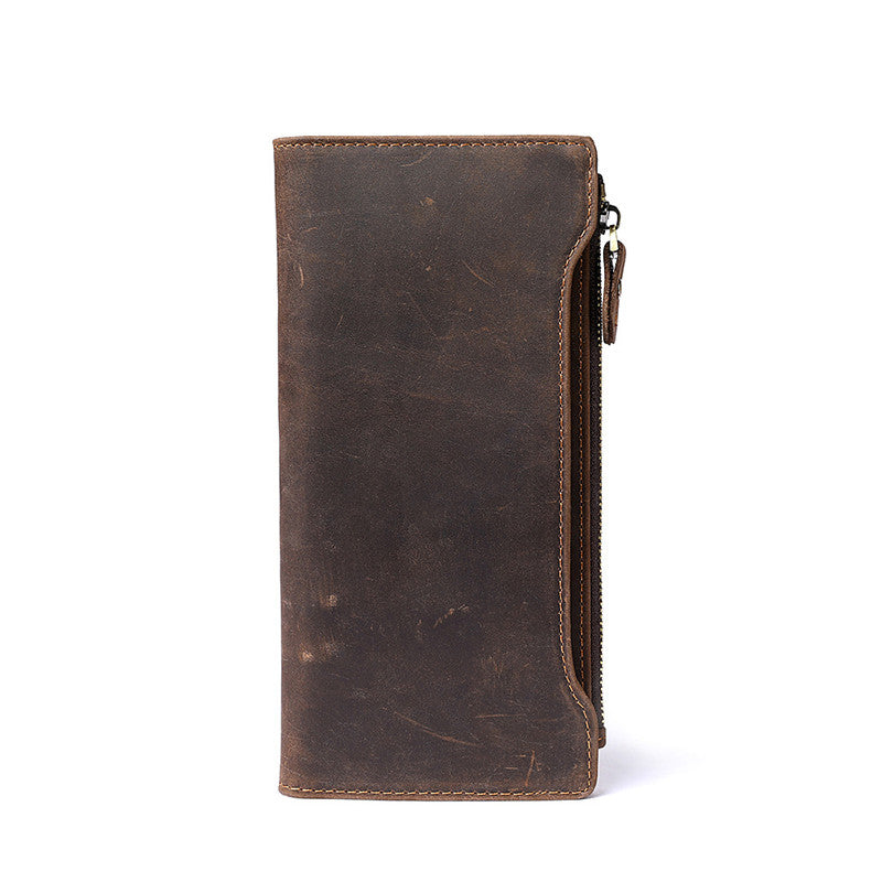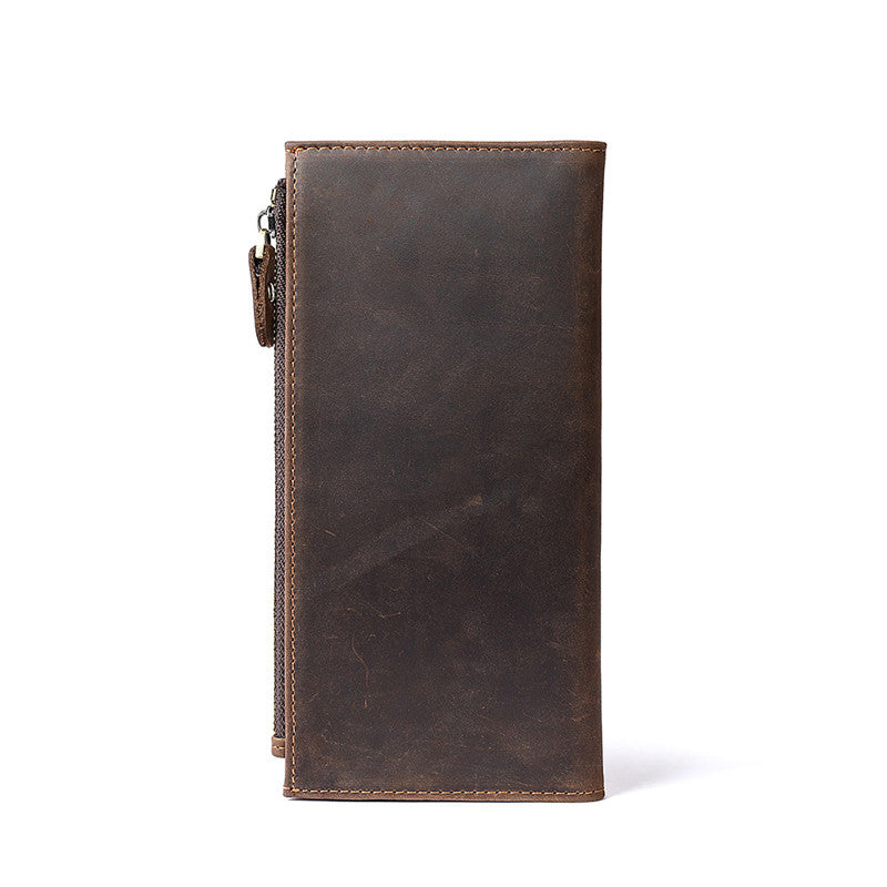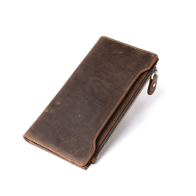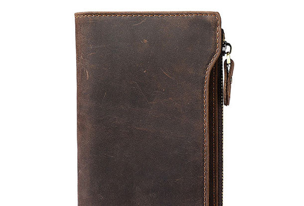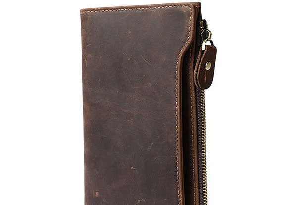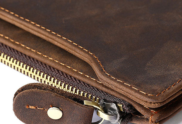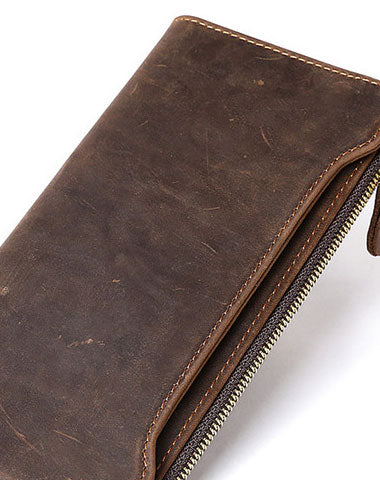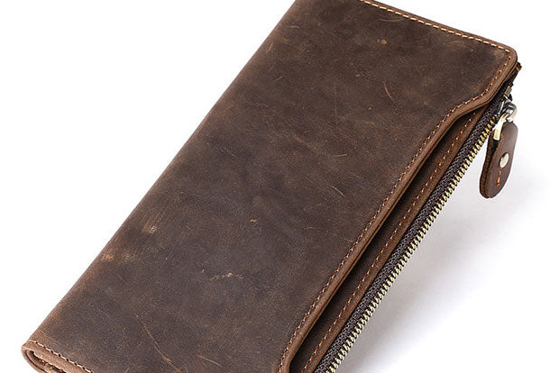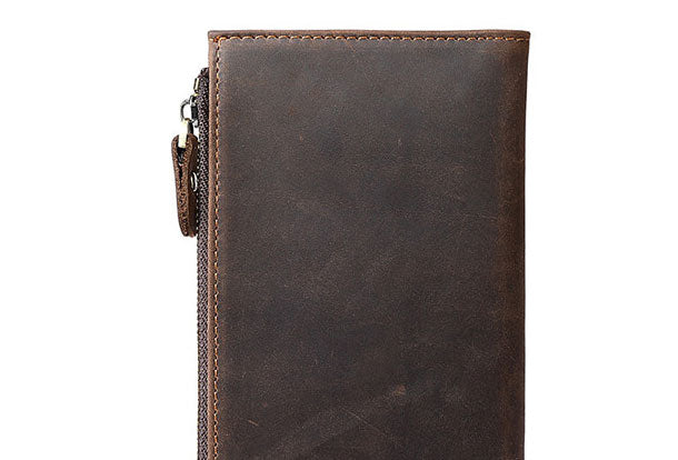 Style: Leather Long wallets for Men Wallet Vintage Zipper Credit Cards Wallet for Men Bifold