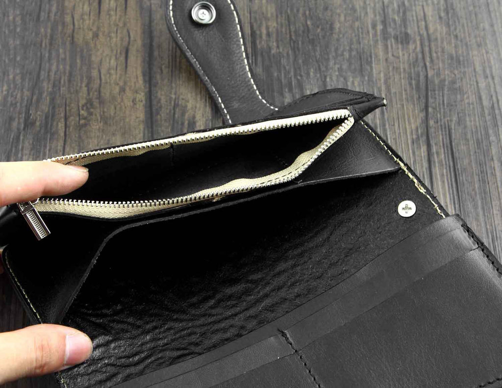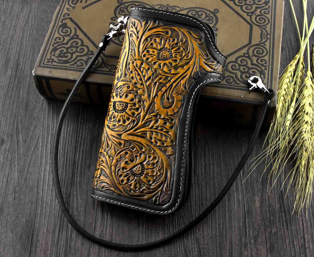 Design: Handmade Tooled Black Leather Mens Biker Chain Wallet Long Biker Wallet with Chain for Men