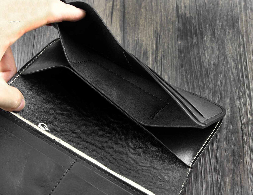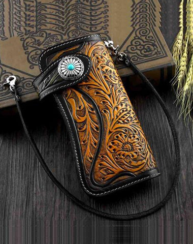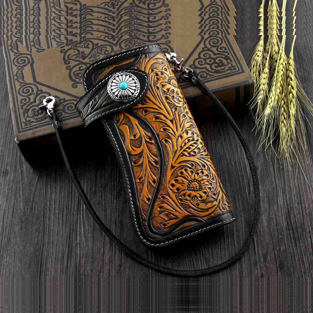 Style: Handmade Tooled Black Leather Mens Biker Chain Wallet Long Biker Wallet with Chain for Men