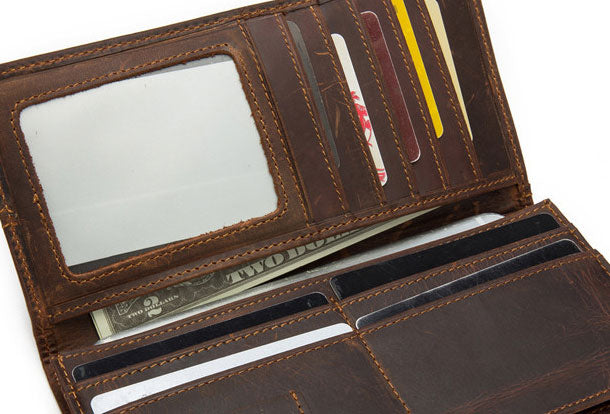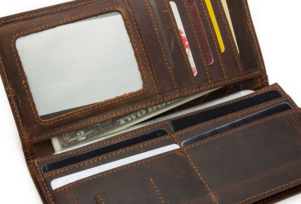 Style: Handmade Genuine Leather Wallet billfold Leather Wallet Slim Bifold Wallet Wristlet Bag For Women