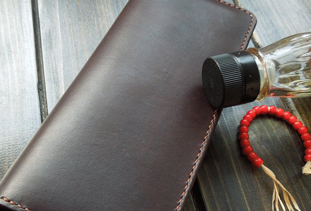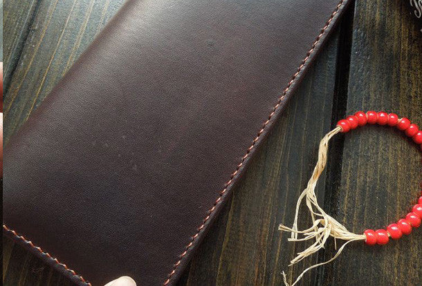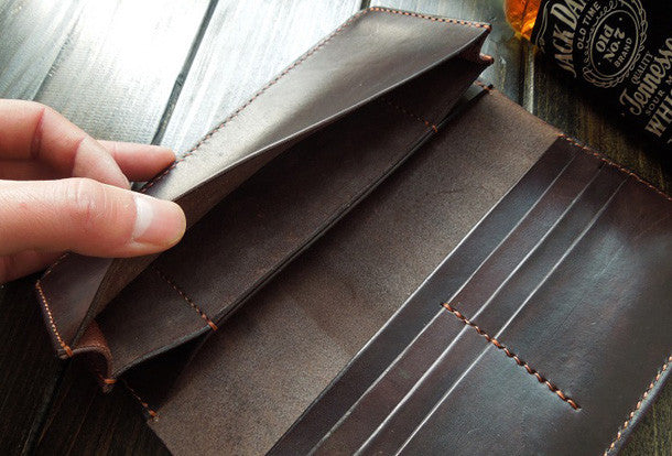 This is handmade hand-dyed?natural Italian Vegetable Tanned leather long biker wallet for men/women.The wallet is bifold,color is Liver.There are 3 full size bill slots/hold