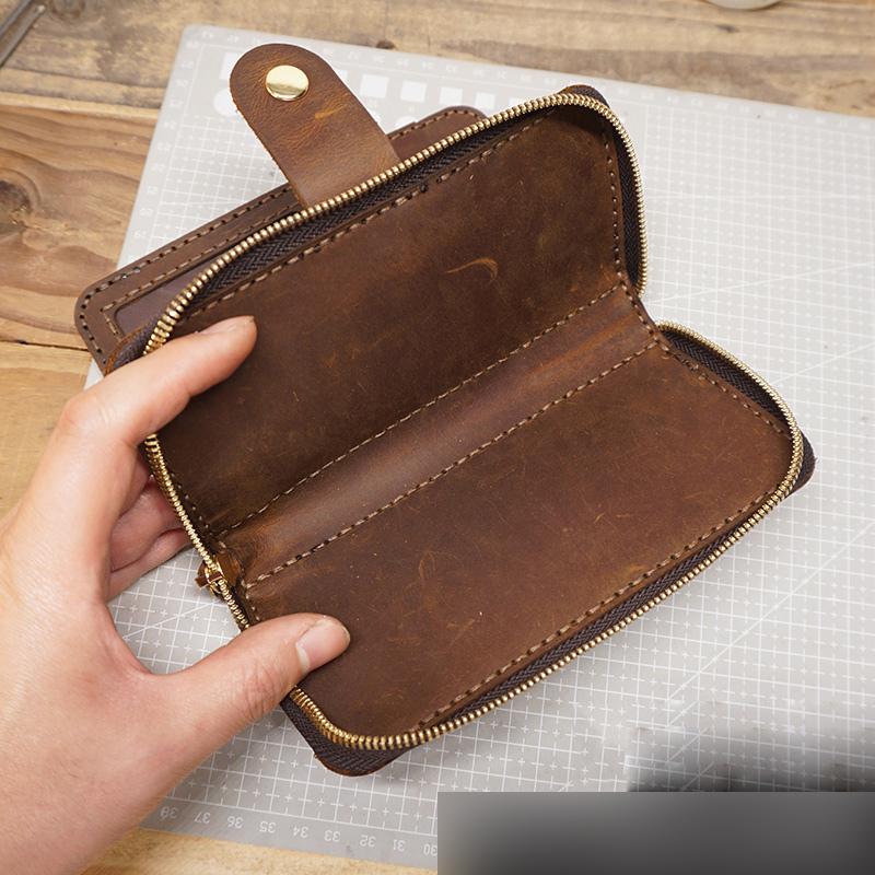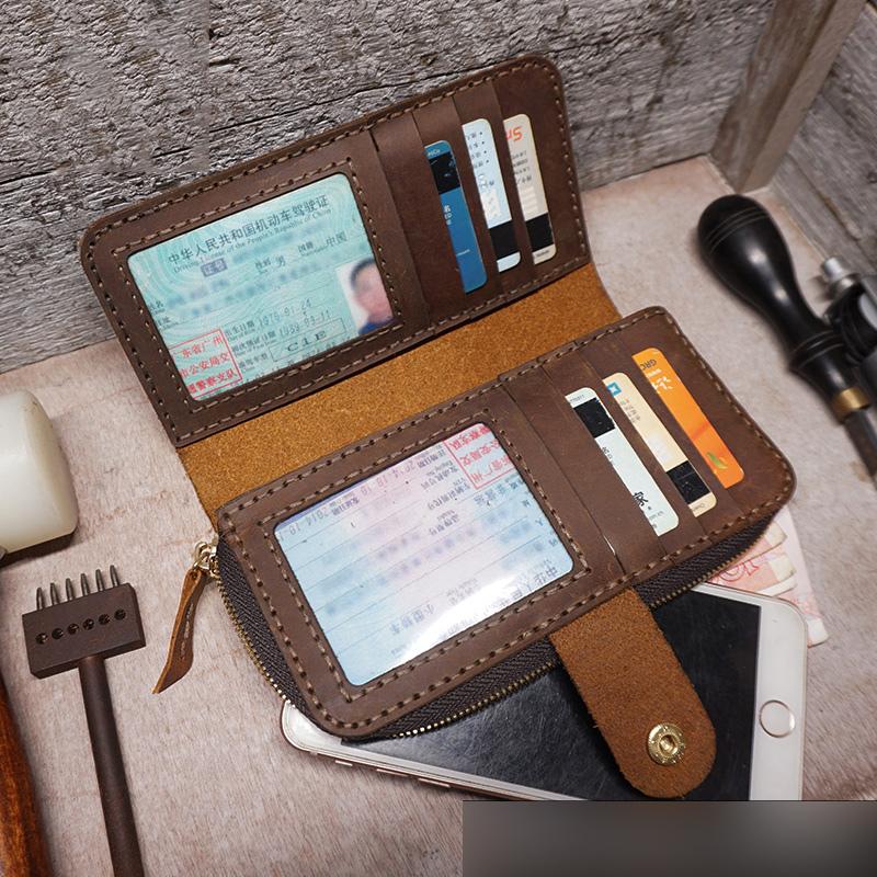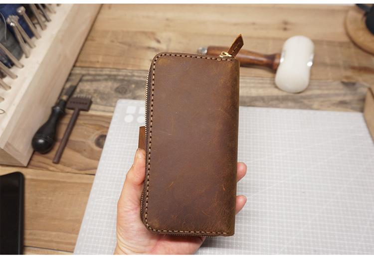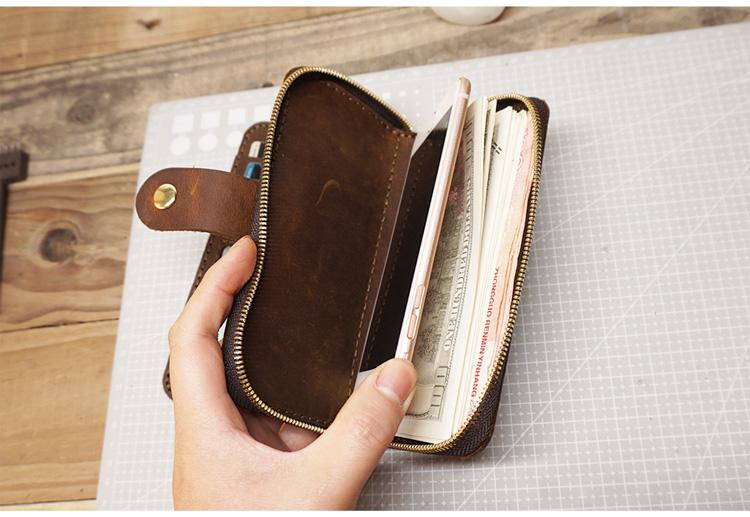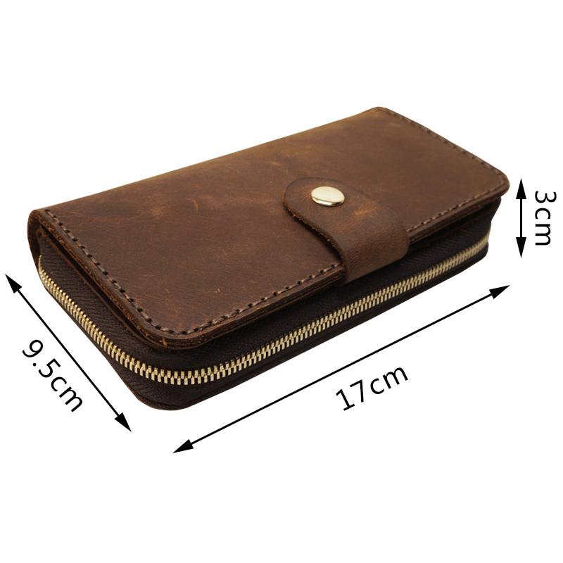 Design: Handmade Leather Mens Bifold Long Wallet Clutch Checkbook Wallet Lots Cards Long Wallet for Men