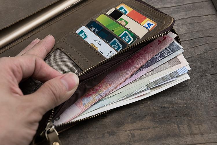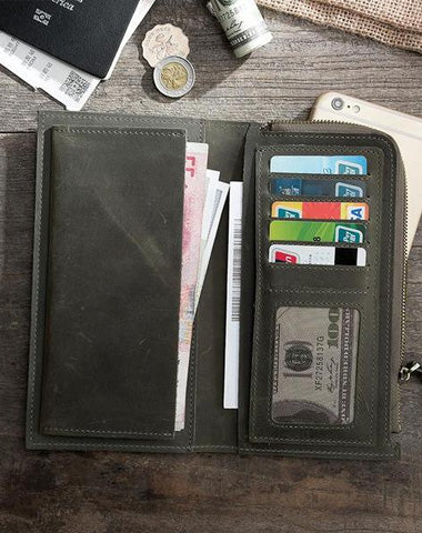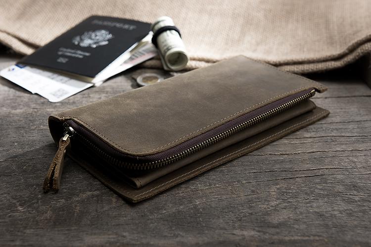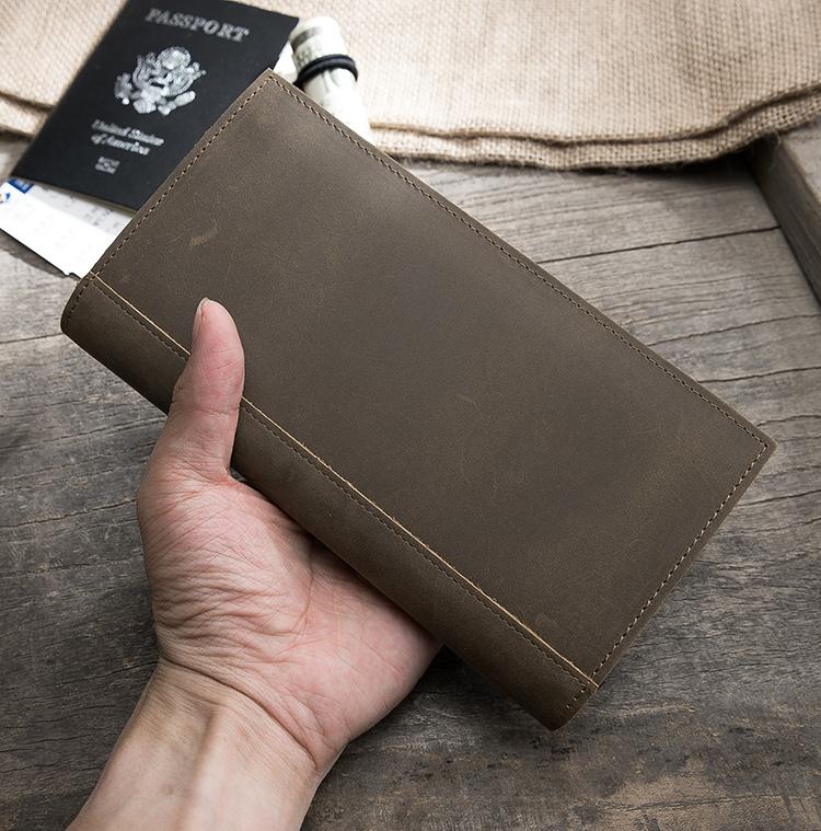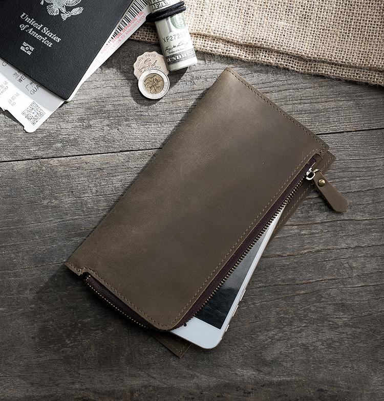 Style: Handmade Leather Mens Clutch Wallet Cool Leather Wallet Long Phone Wallets for Men