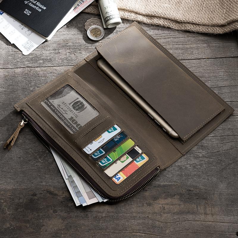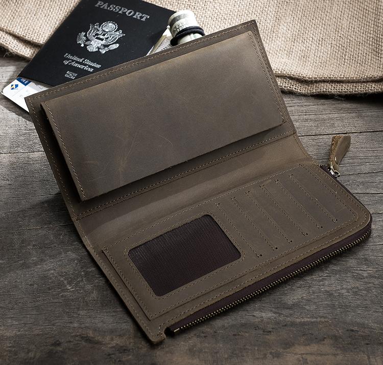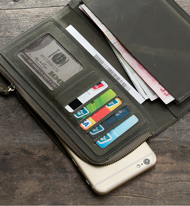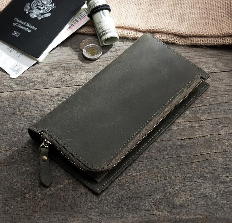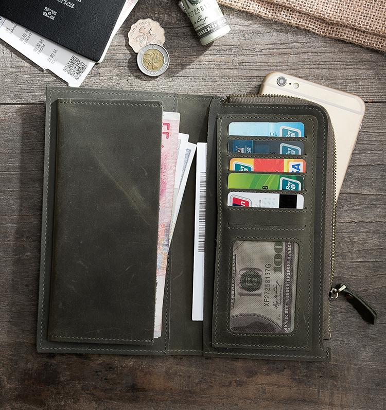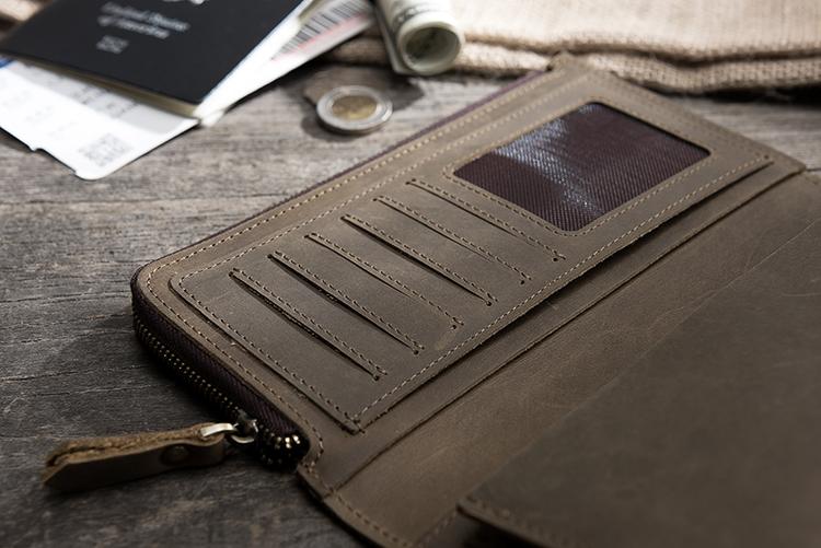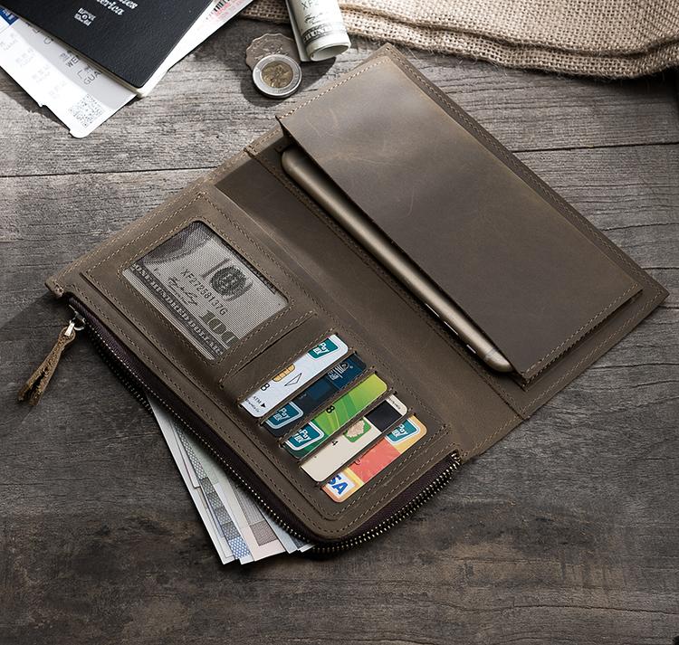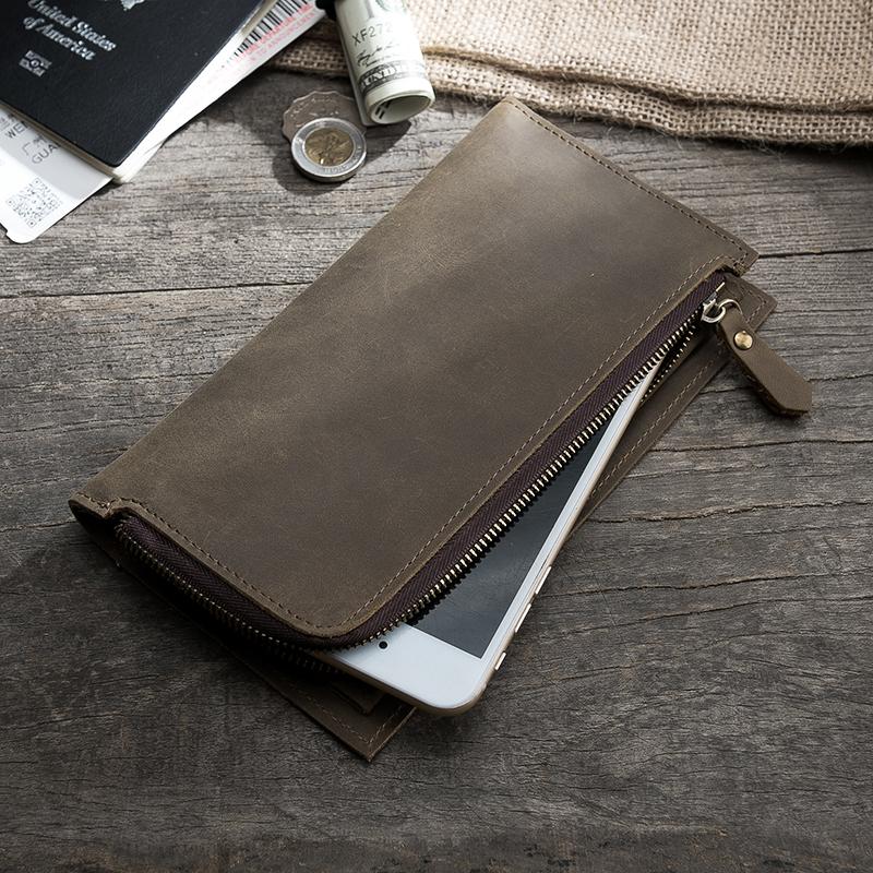 Design: Handmade Leather Mens Clutch Wallet Cool Leather Wallet Long Phone Wallets for Men