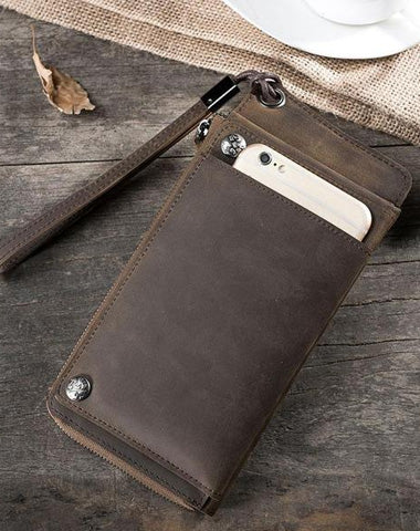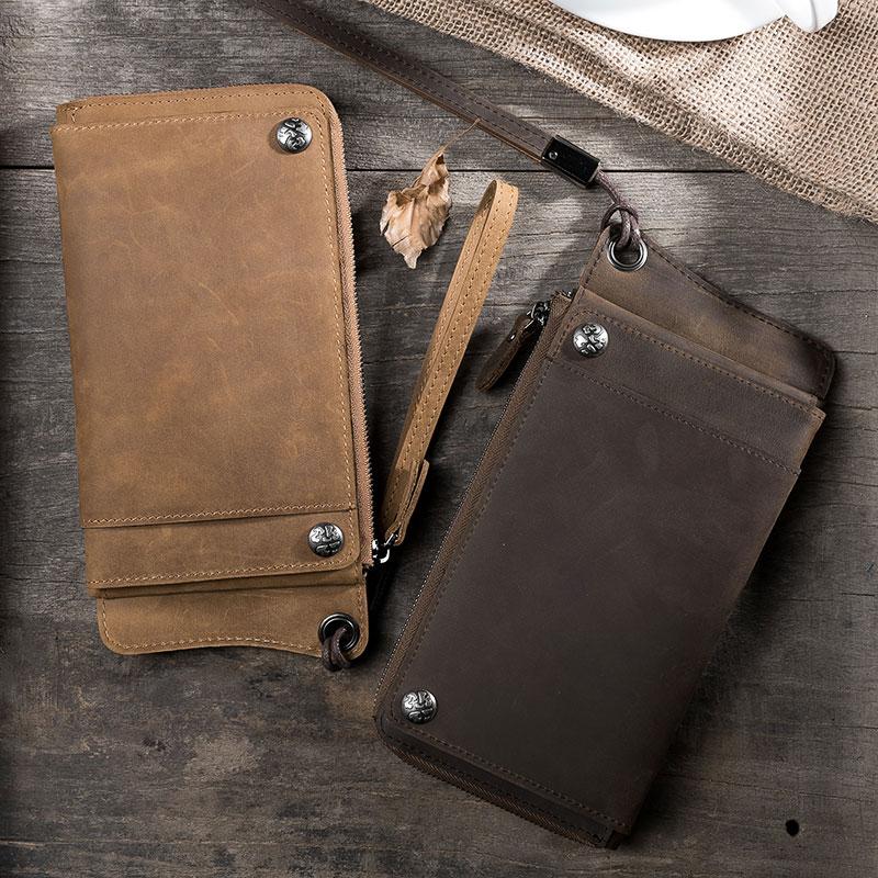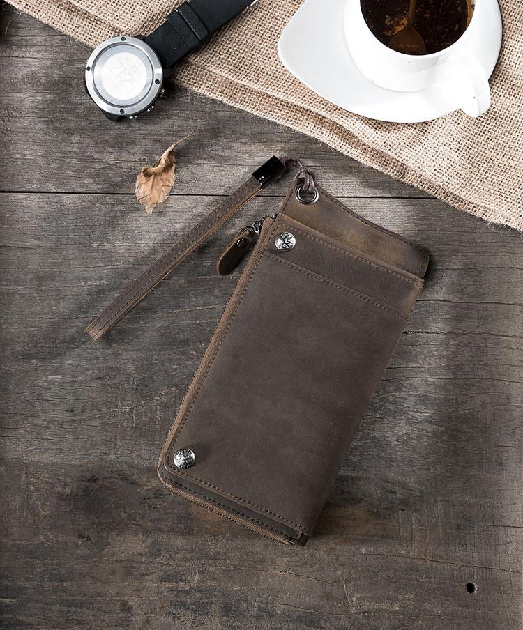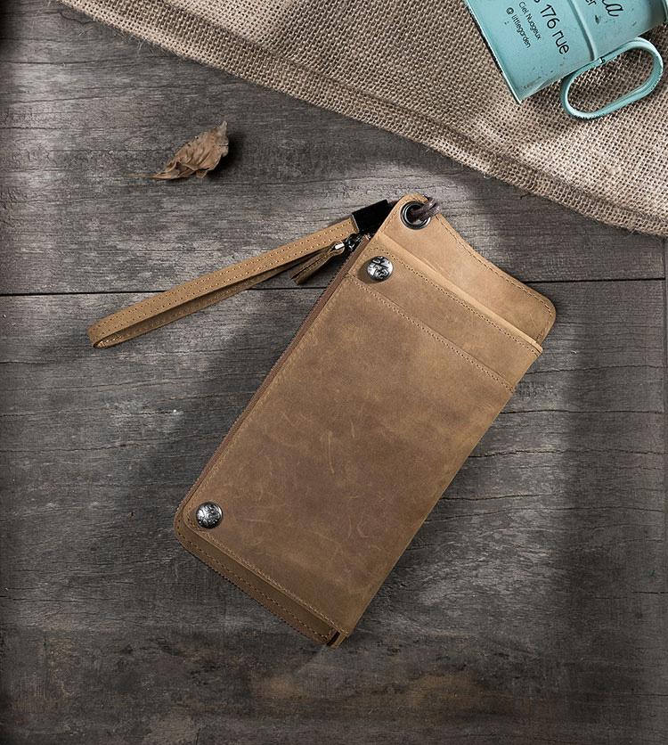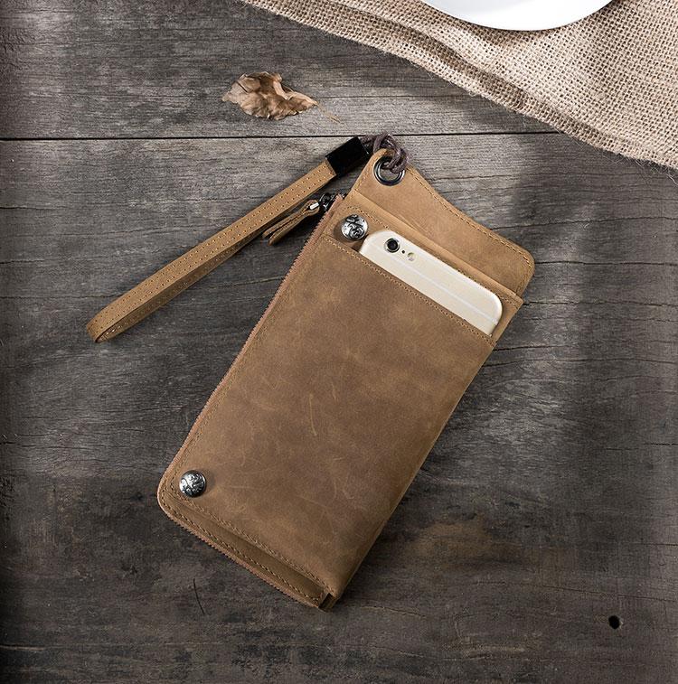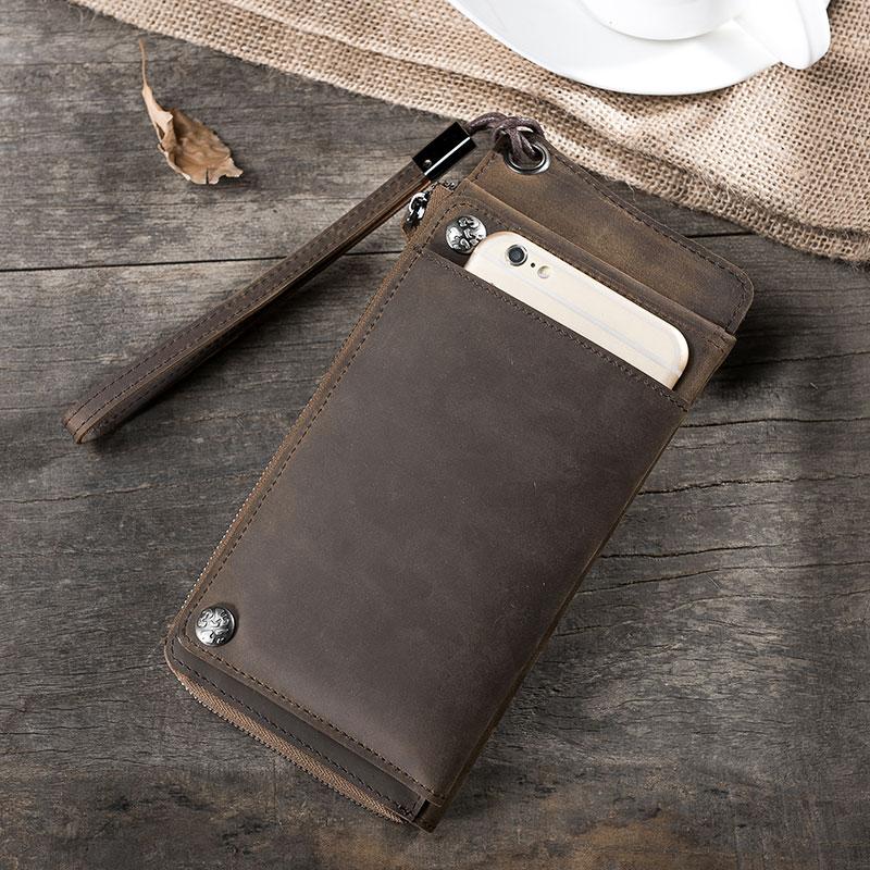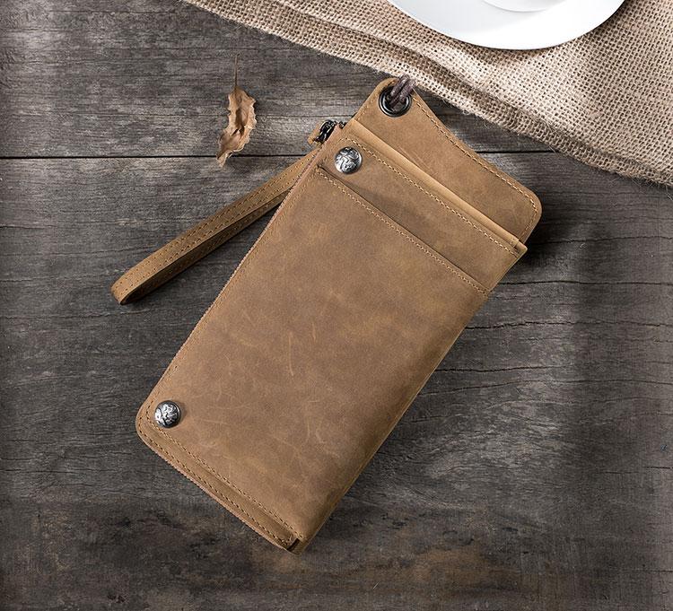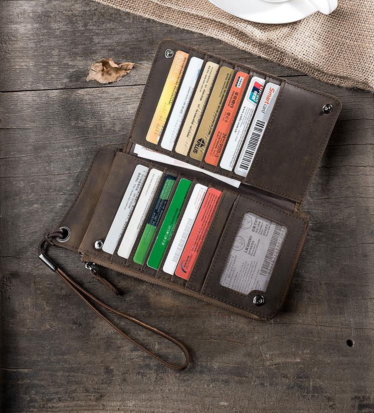 Style: Handmade Leather Mens Cool Long Chain Wallet Phone Biker Trucker Wristlet Wallet
