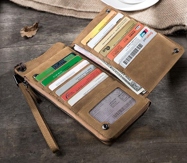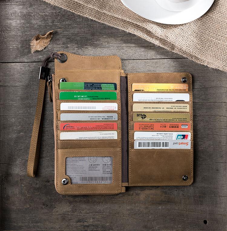 Slots: 2 full size bill slot, 13 card holders,1 zipper slot, 1 phone slot
