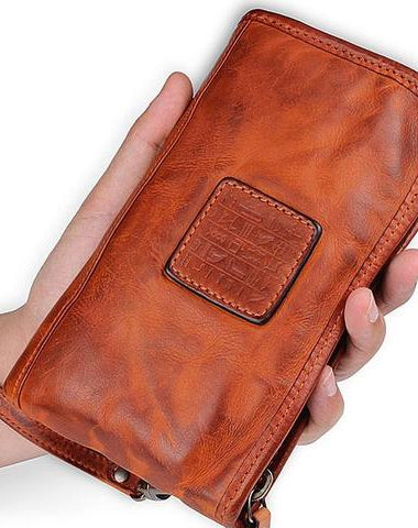 Design: Handmade Leather Mens Cool Long Leather Wallet Wristlet Wallet for Men