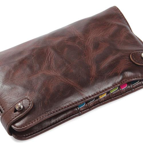 Design: Handmade Leather Mens Cool Long Leather Wallet Bifold Clutch Wallet for Men