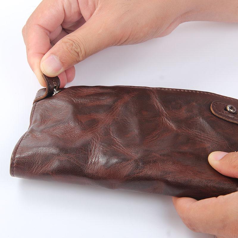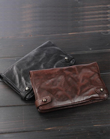 Handmade Leather Mens Cool Long Leather Wallet Bifold Clutch Wallet for Men