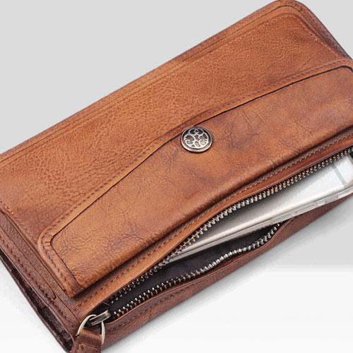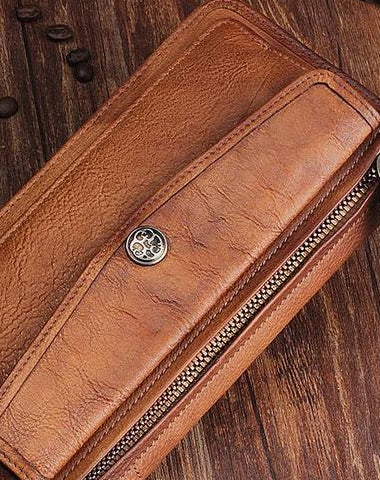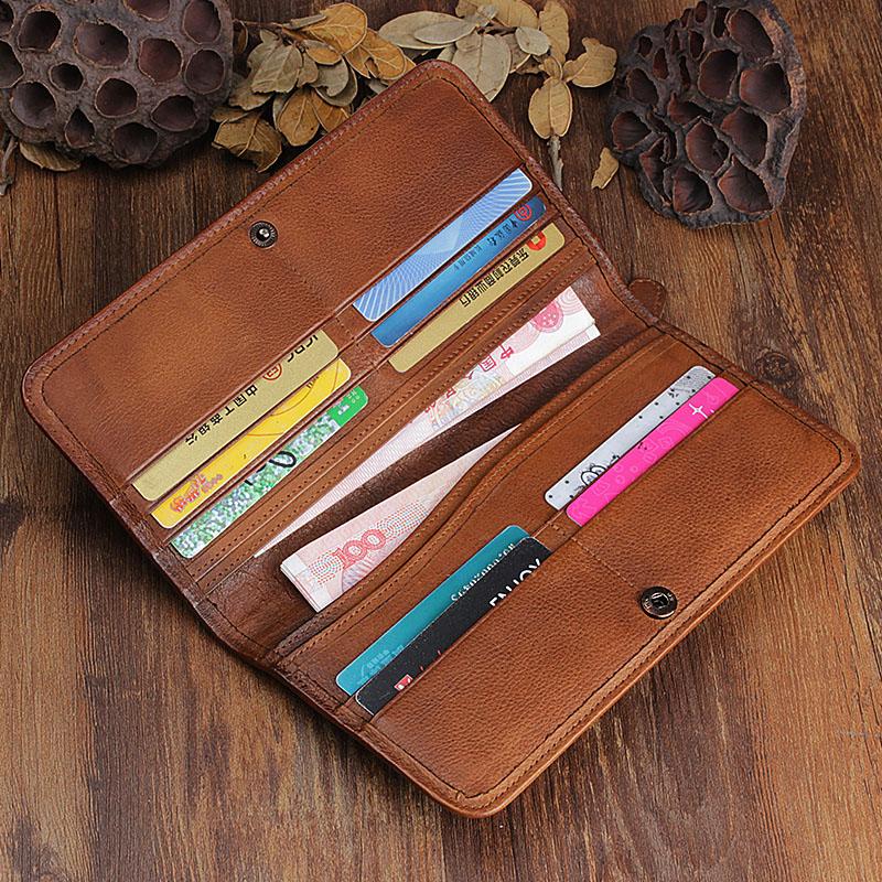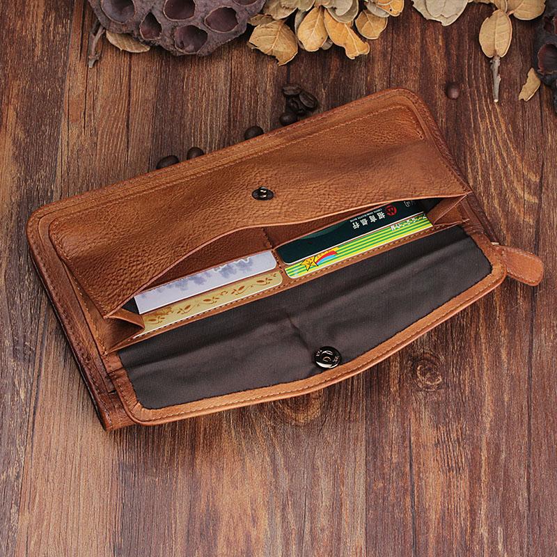 Design: Handmade Leather Mens Cool Long Leather Wallet Bifold Clutch Wallet for Men