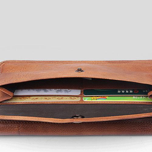 Slots: 2 full size bill slots, 16 card holders, 1 change slot, 1 zipper slot