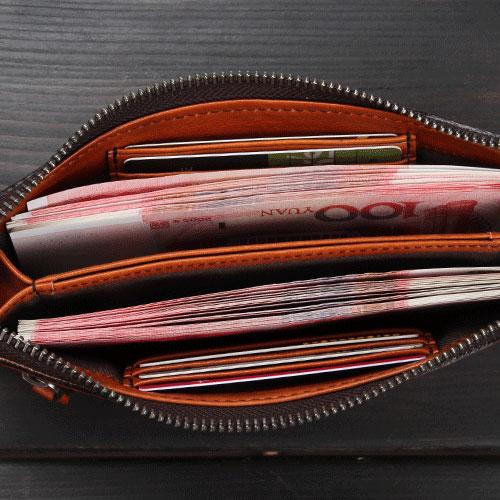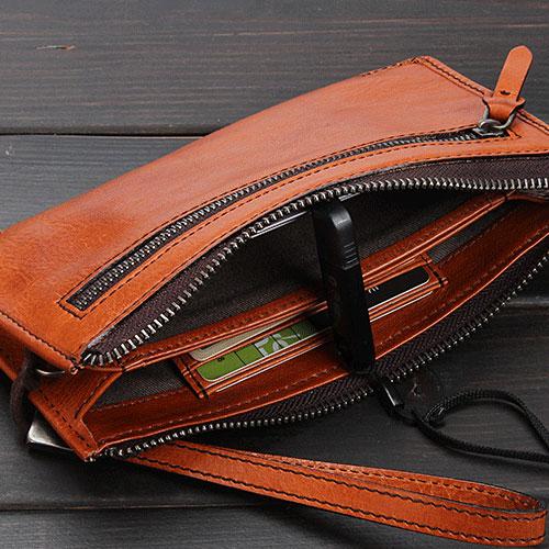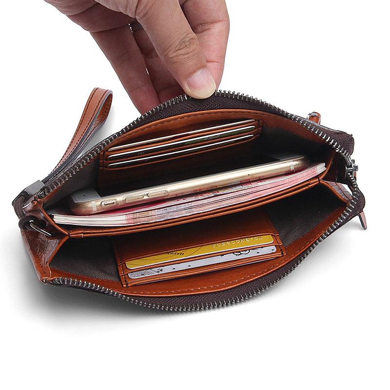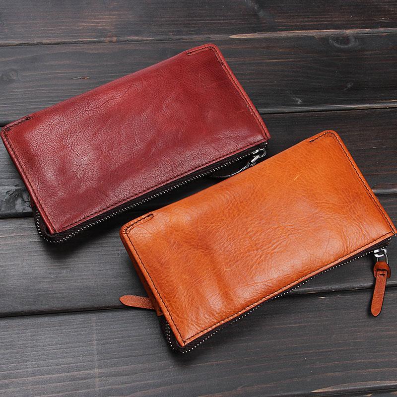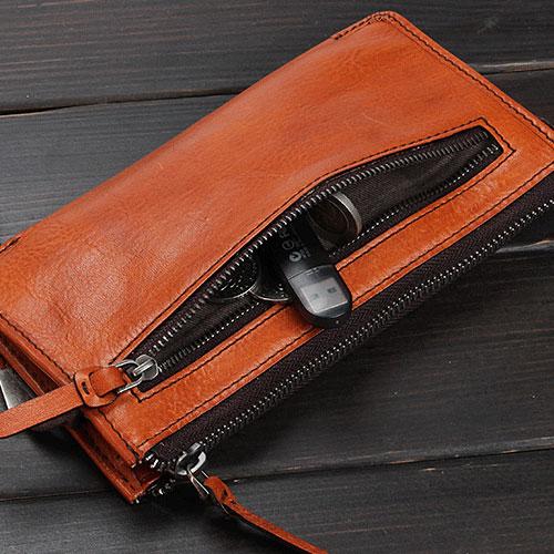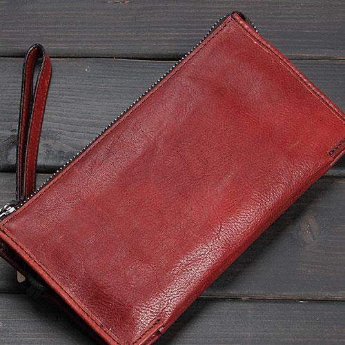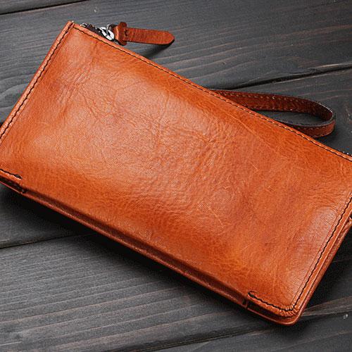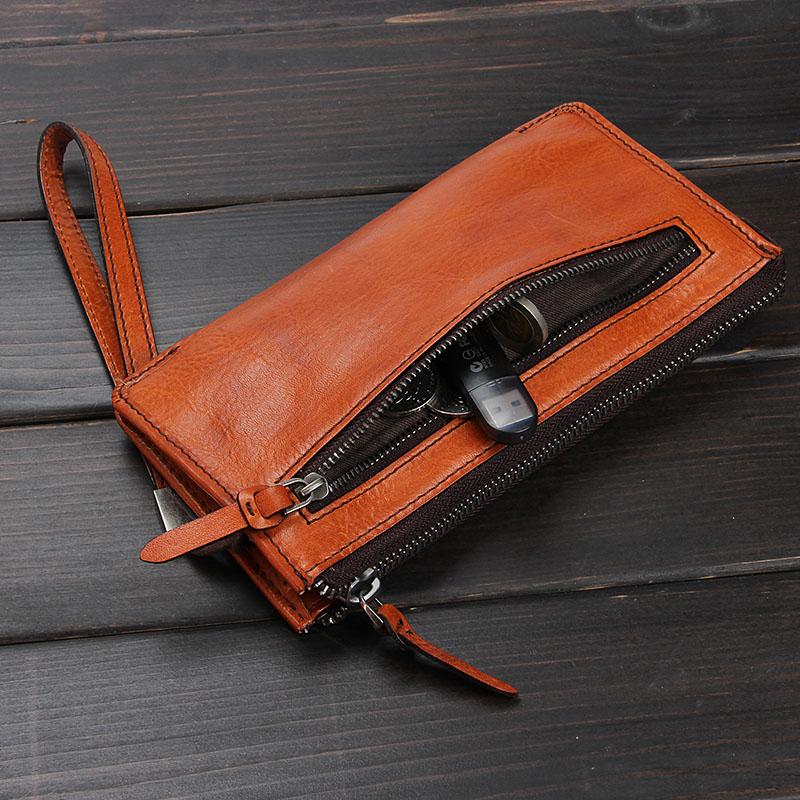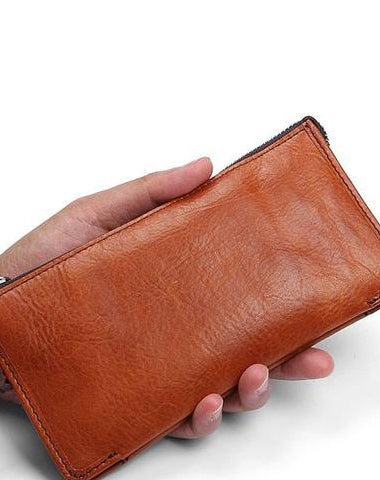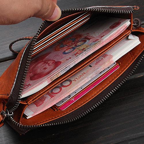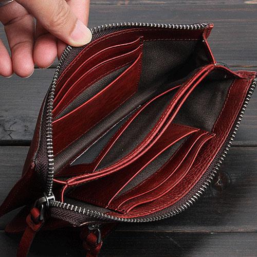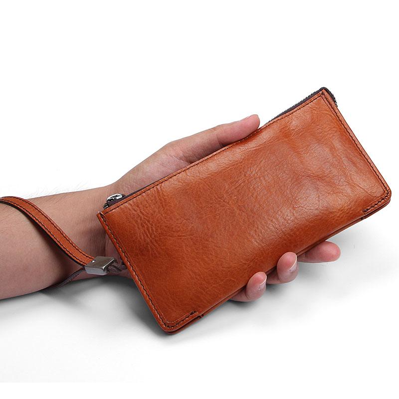 Design: Handmade Leather Mens Cool Long Leather Wallet Zipper Clutch Wristlet Wallet for Men
