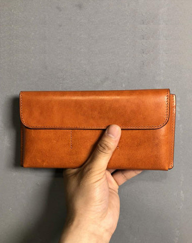 Style: Handmade Leather Mens Cool Wallet Long Leather Wallet Clutch Wristlet Wallet for Men Women