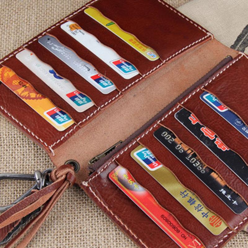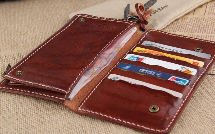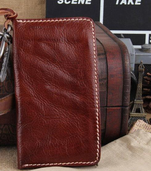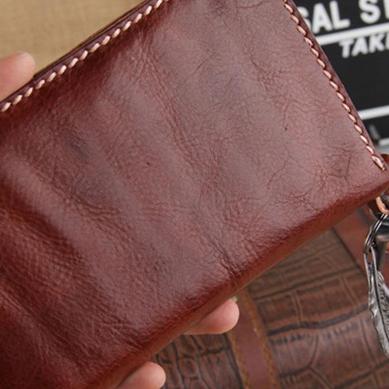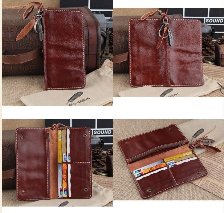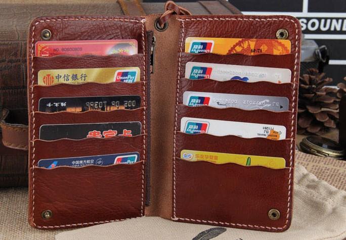 Style: Handmade Leather Mens Long Chain Biker Wallet Cool Leather Wallet Slim Wallets for Men