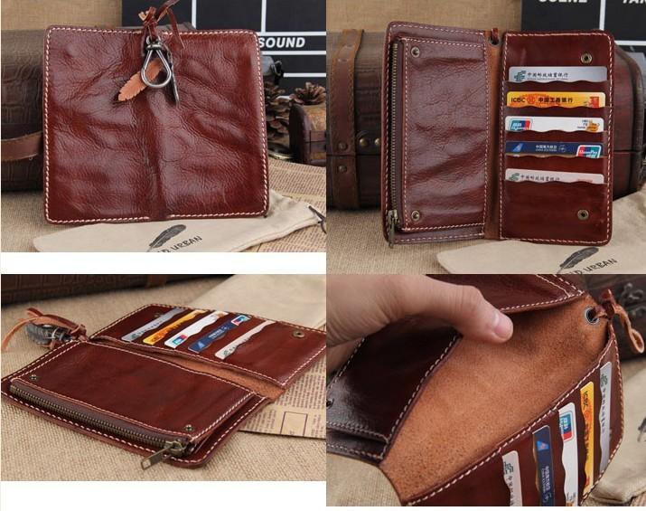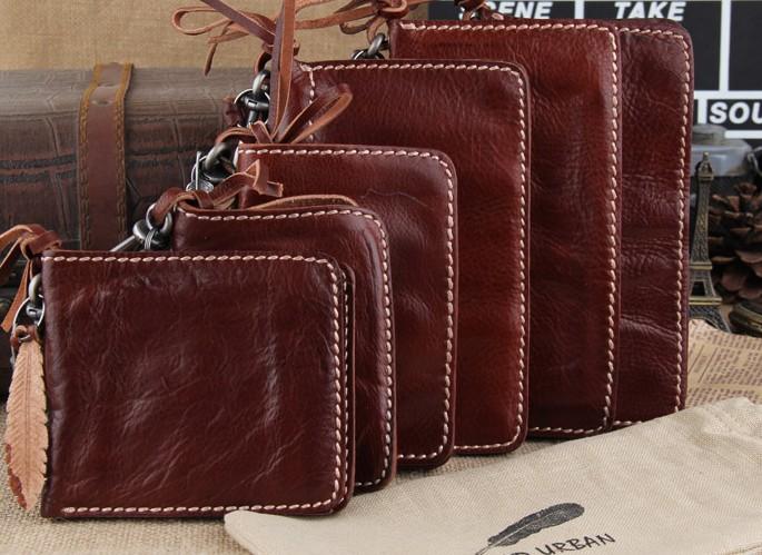 Design: Handmade Leather Mens Long Chain Biker Wallet Cool Leather Wallet Slim Wallets for Men