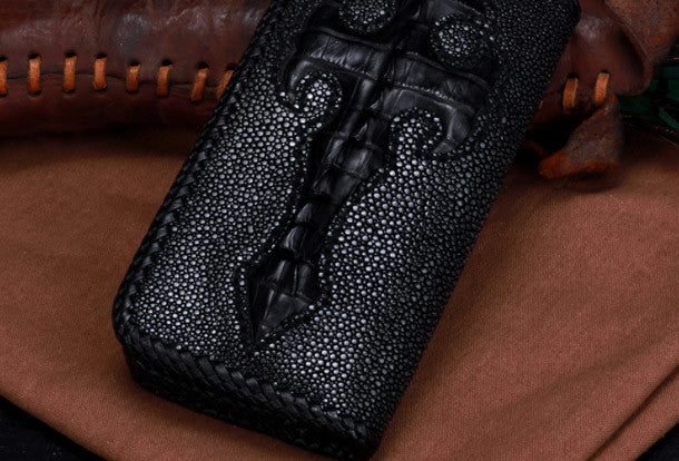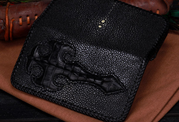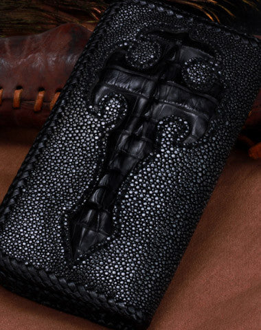 Design: Pearl fish crocodile skin Long Leather Wallet