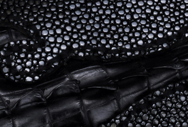 Leather:?Italian natural Vegetable-Tanned leather,?Pearl fish crocodile skin