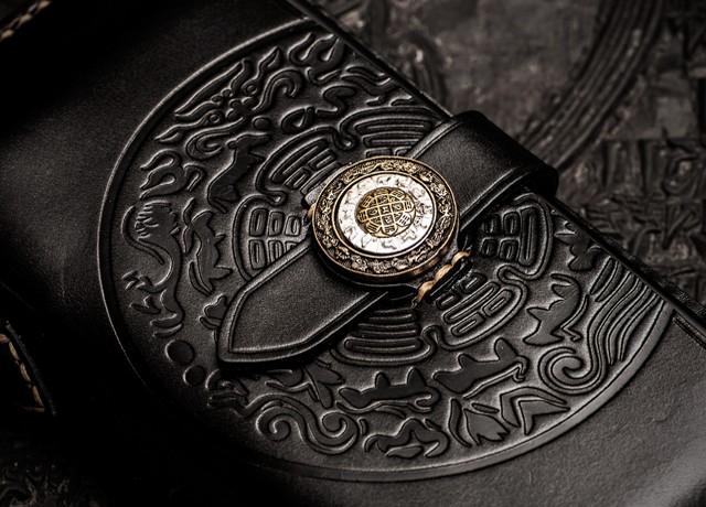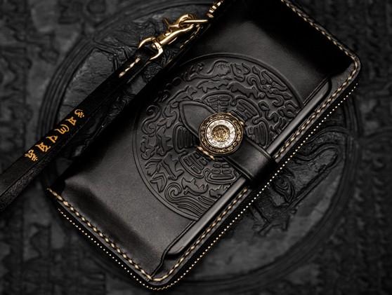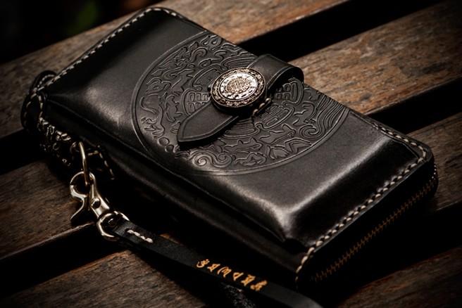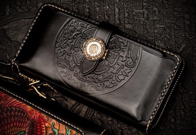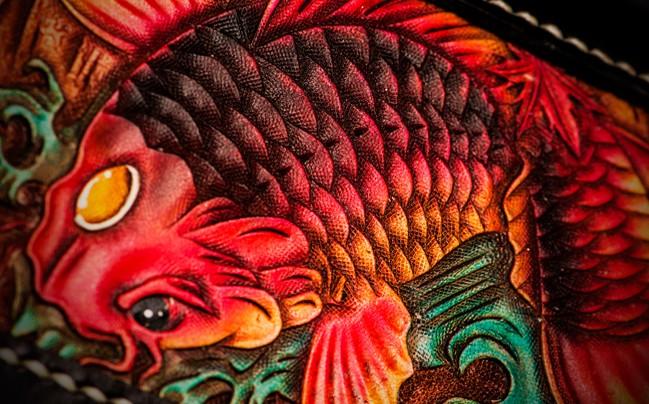 Design: Handmade Leather Tooled Carp Chain Wallet Mens Biker Wallet Cool Leather Wallet Long Phone Wallets for Men