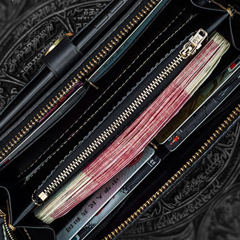 Slots: 2 full size bill slot, 8 card holders, 1 zipper slot
