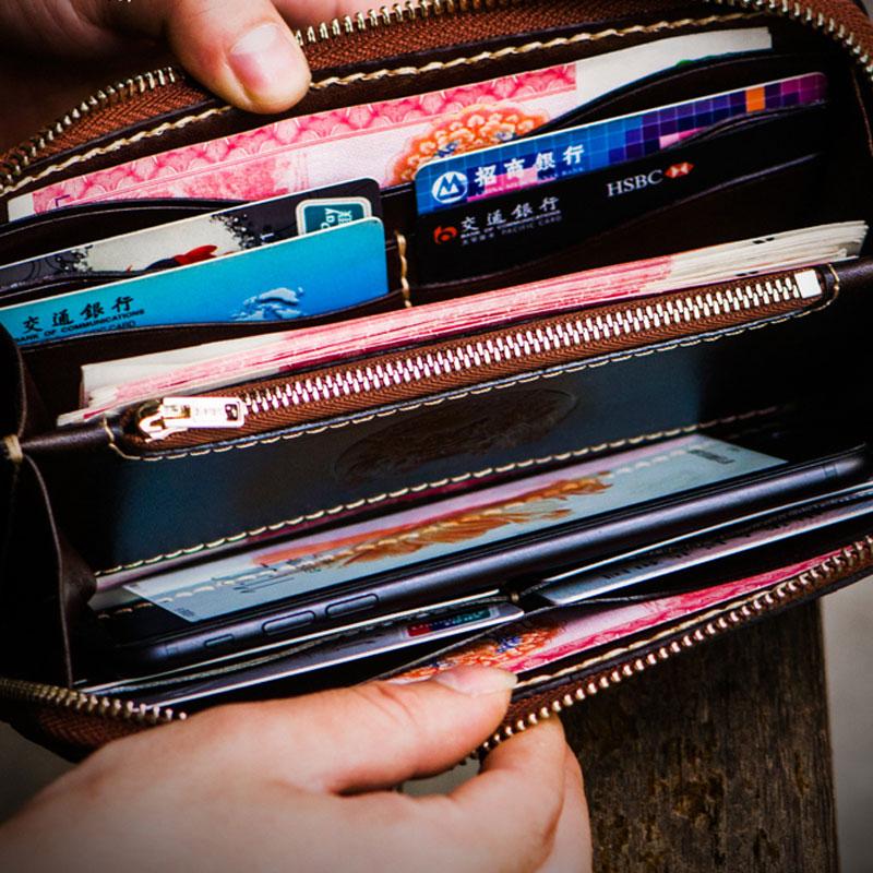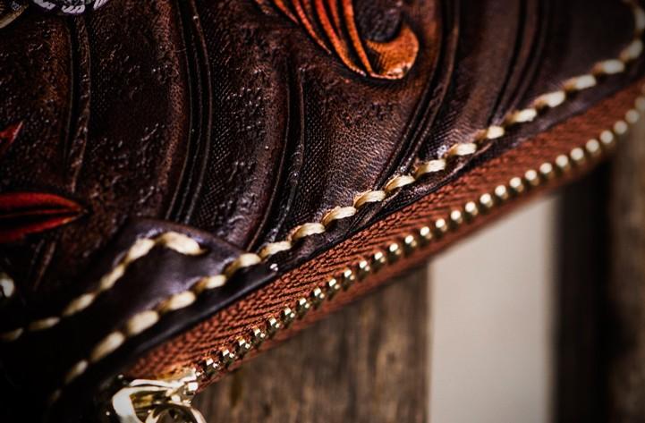 Style: Handmade Leather Tooled Carp Mens Chain Biker Wallet Cool Leather Wallet Long Phone Wallets for Men and it should last a life time