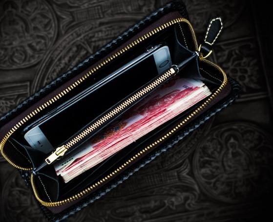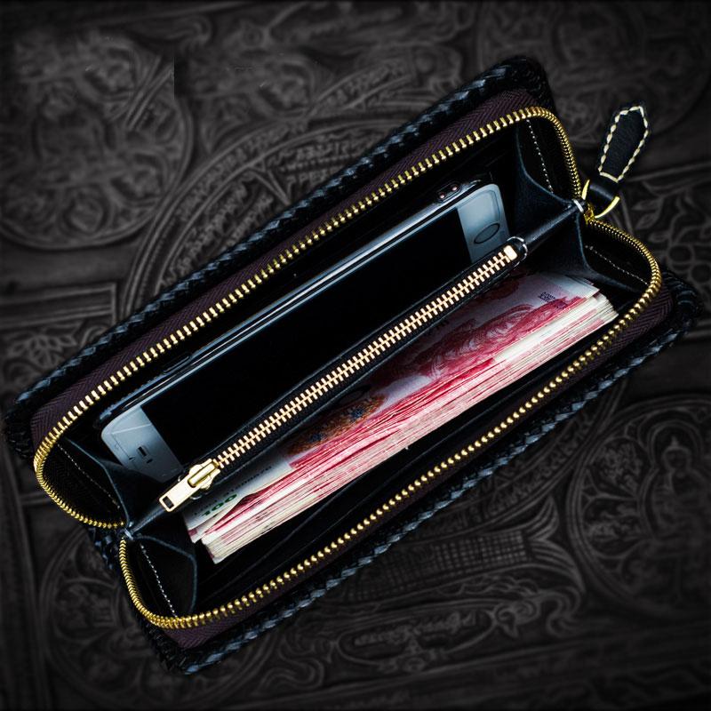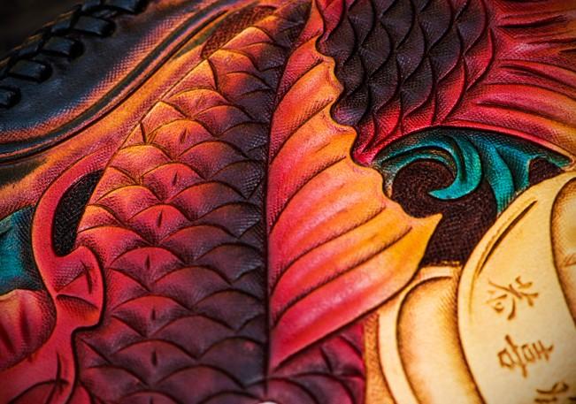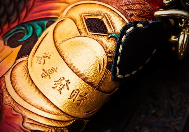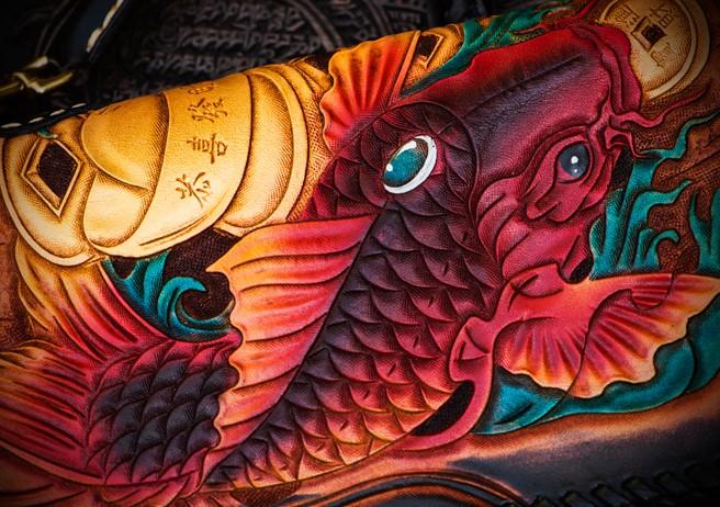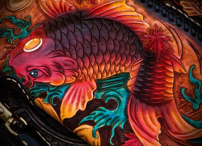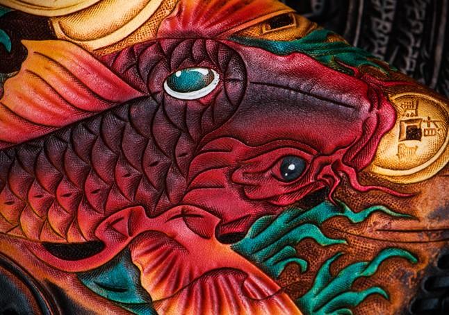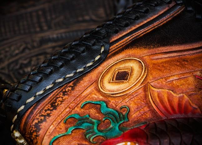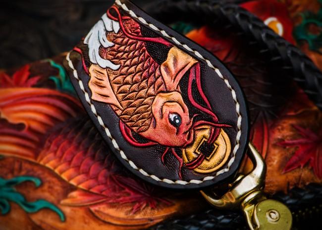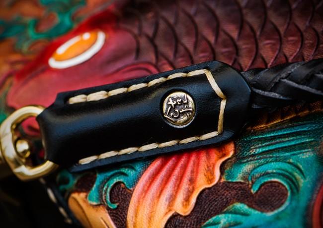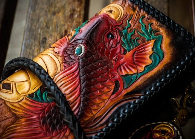 Design: Handmade Leather Tooled Carp Mens Chain Biker Wallet Cool Leather Wallet Long Phone Wallets for Men