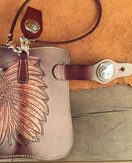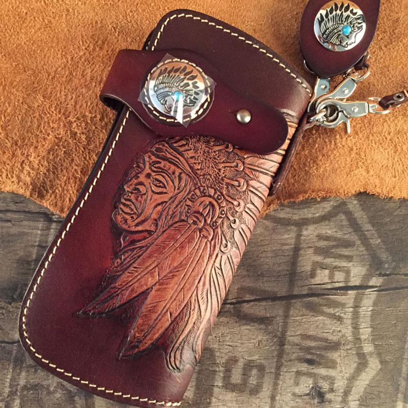 Style: Handmade Leather Tooled Indian Chief Mens Chain Biker Wallet Cool Leather Wallet Long Wallet for Men