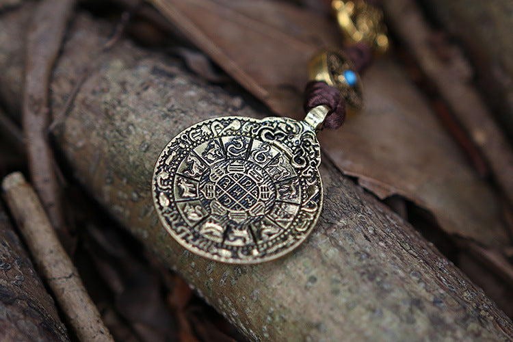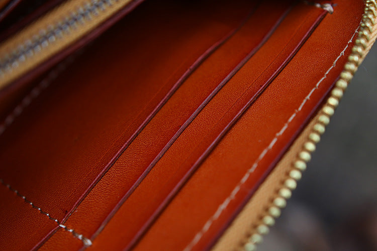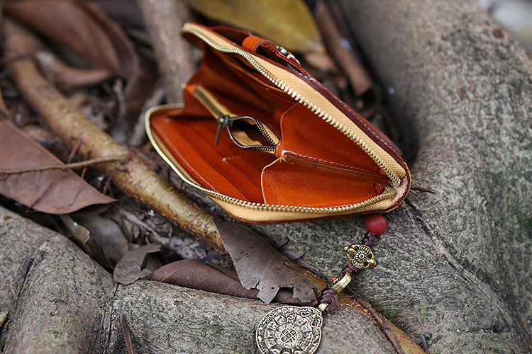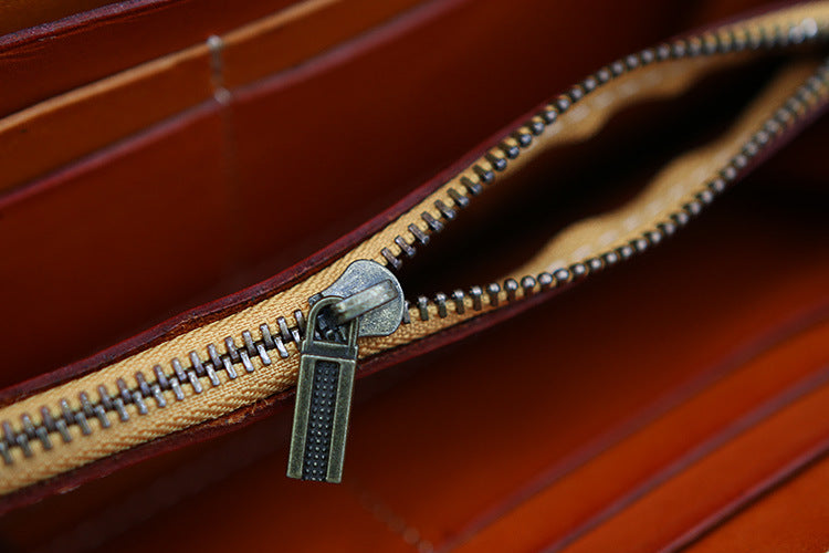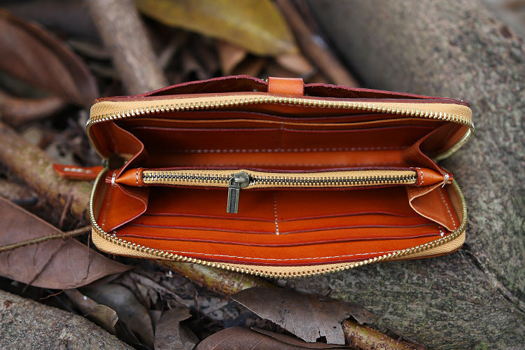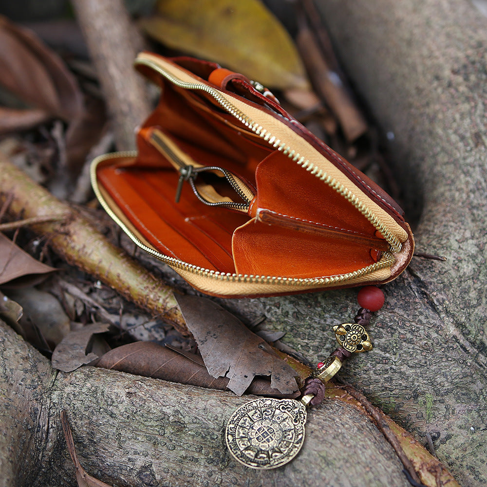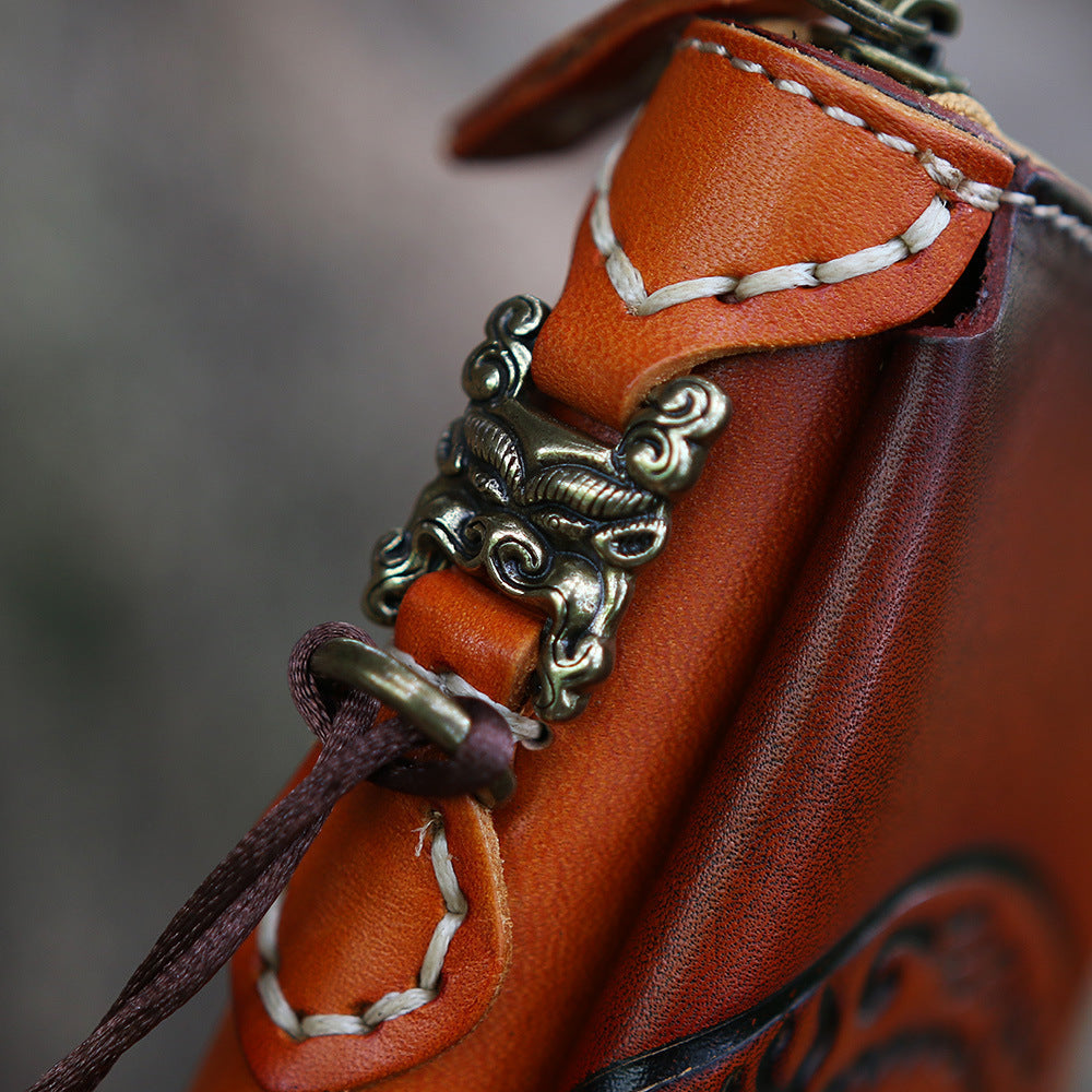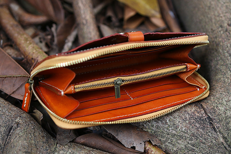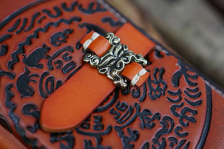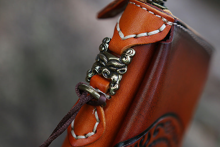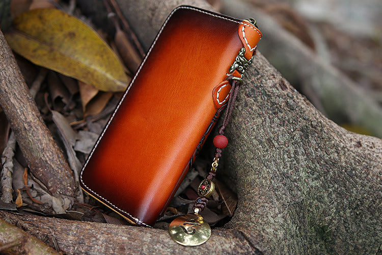 Design: Handmade Leather Tooled Tibetan Totem Long Wallet Cool Zipper Clutch Wristlet Wallet for Men