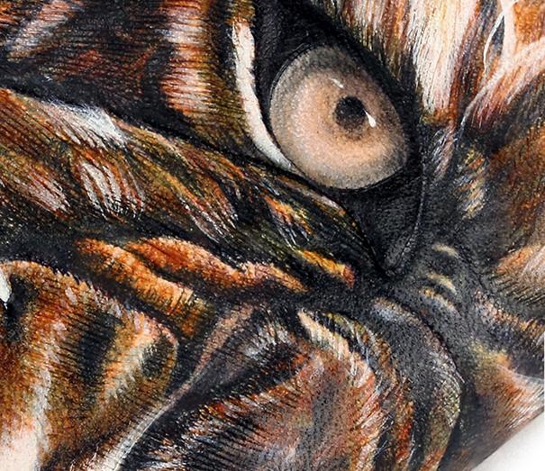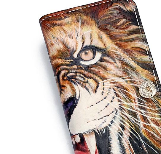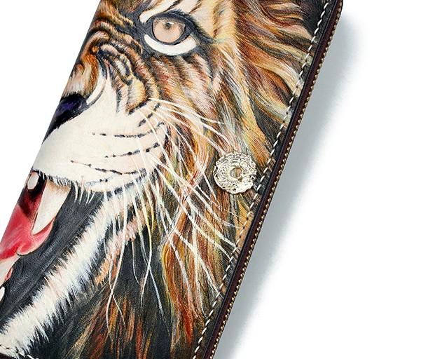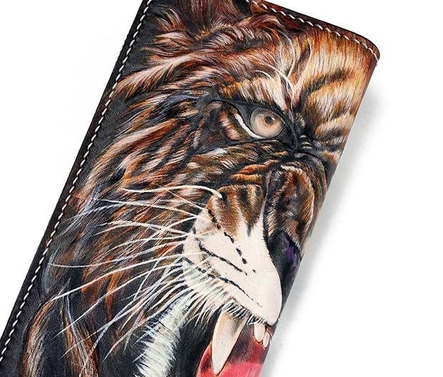 Design: Handmade Leather Tooled Tiger Mens Chain Zipper Biker Wallet Cool Leather Wallet Long Phone Wallets for Men