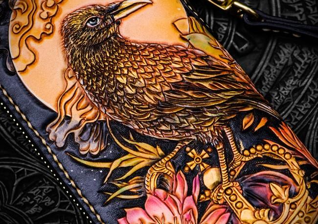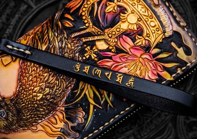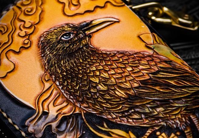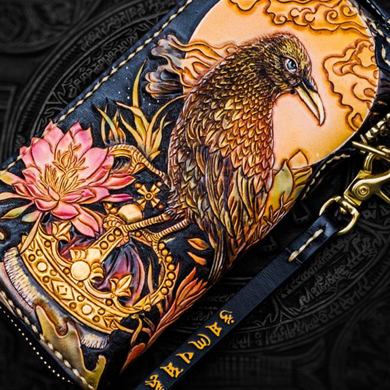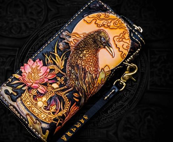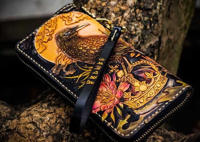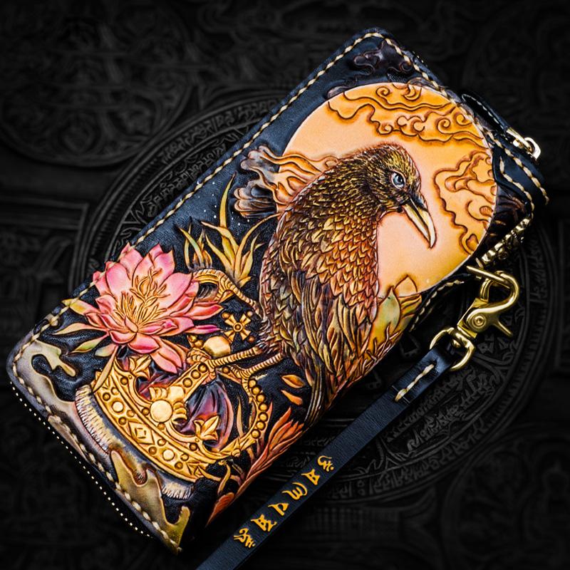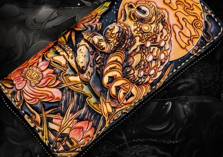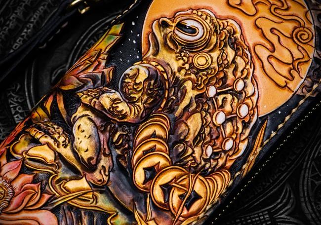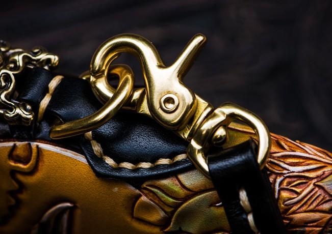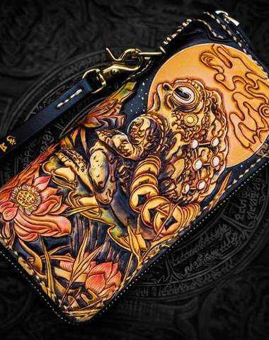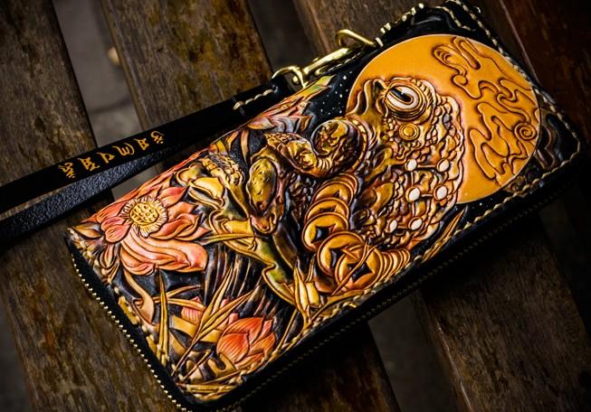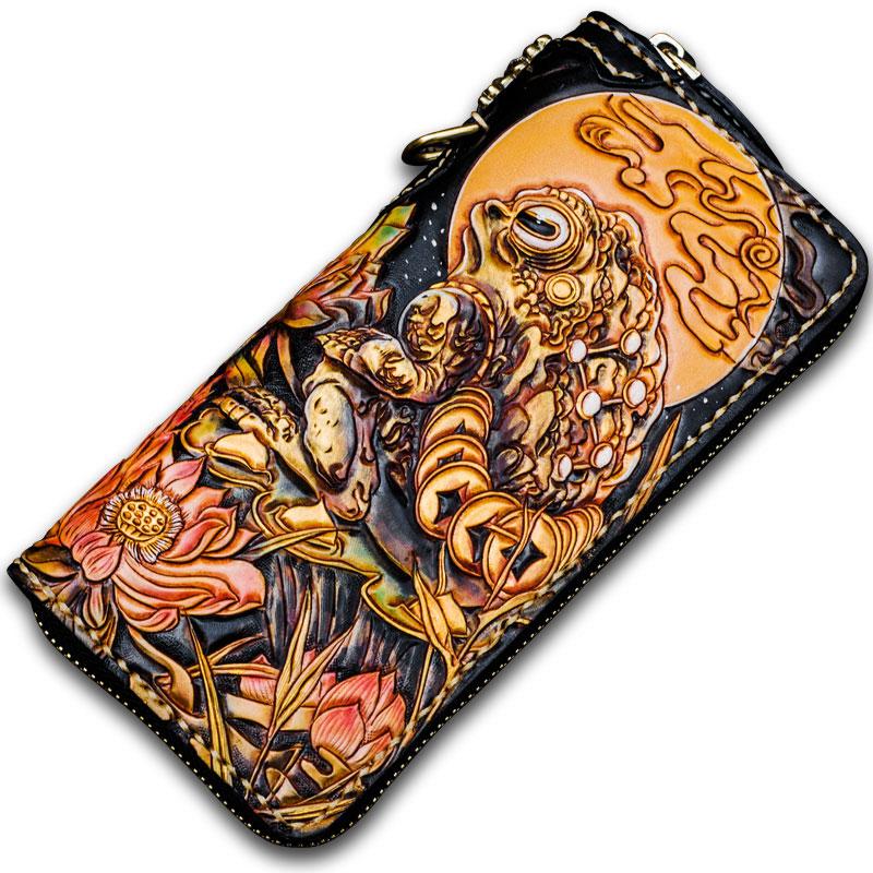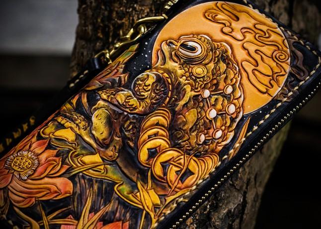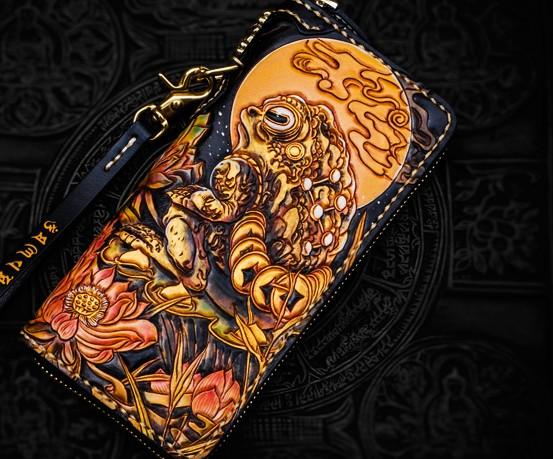 Design: Handmade Leather Tooled Toad Chain Wallet Mens Biker Wallet Cool Leather Wallet Long Phone Wallets for Men