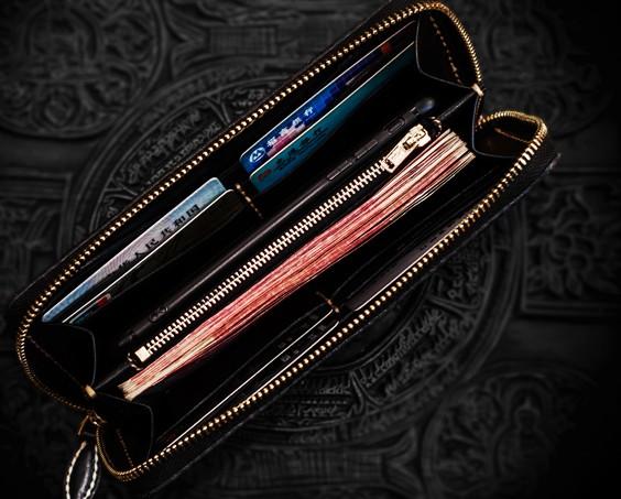 Slots: 2 full size bill slot, 8 card holders, 1 zipper slot