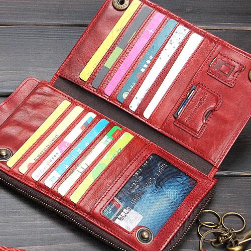 Slots: 1 full size bill slot, 14 card holders, 1 phone slot,1 zipper slot