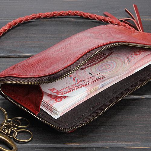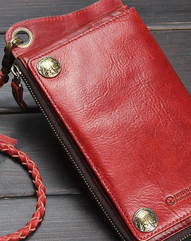 Style: Handmade Mens Cool Long Leather Chain Wallet Cards Biker Trucker Wristlet Wallet