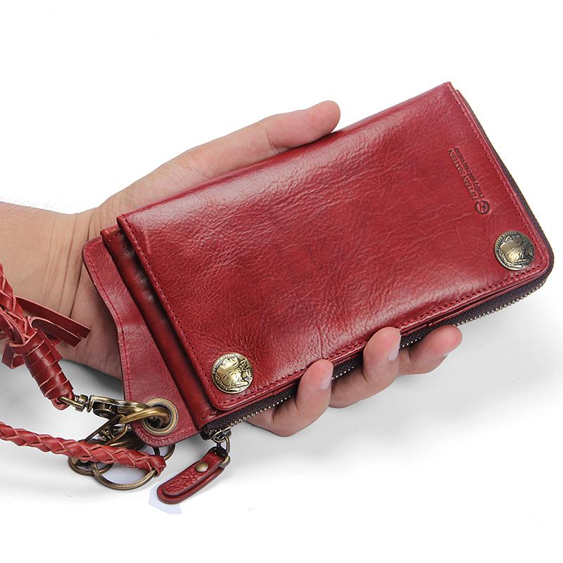 Design: Handmade Mens Cool Long Leather Chain Wallet Cards Biker Trucker Wristlet Wallet