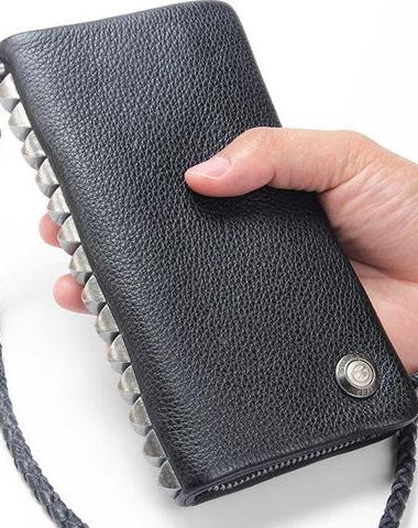 Style: Handmade Mens Cool Long Leather Chain Wallet Cards Biker Trucker Wristlet Wallet