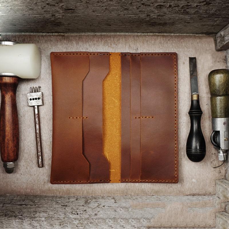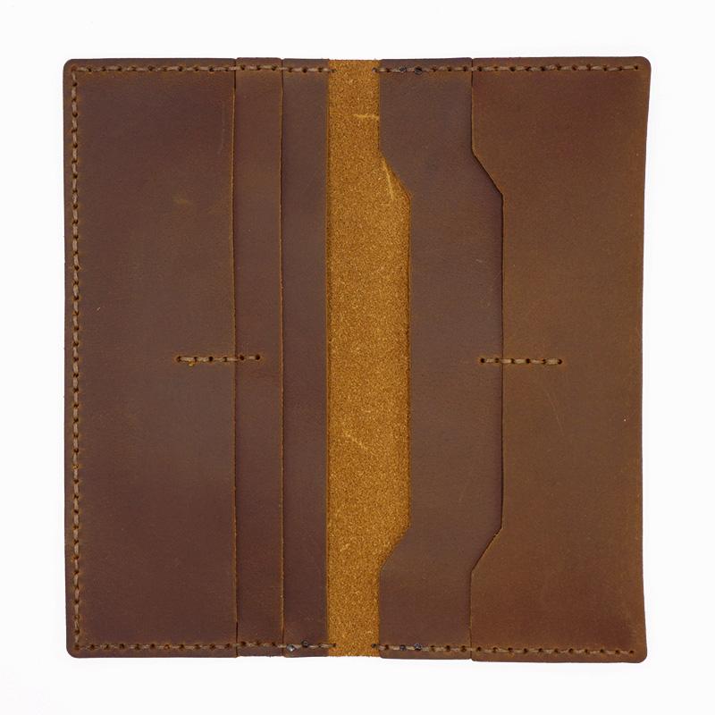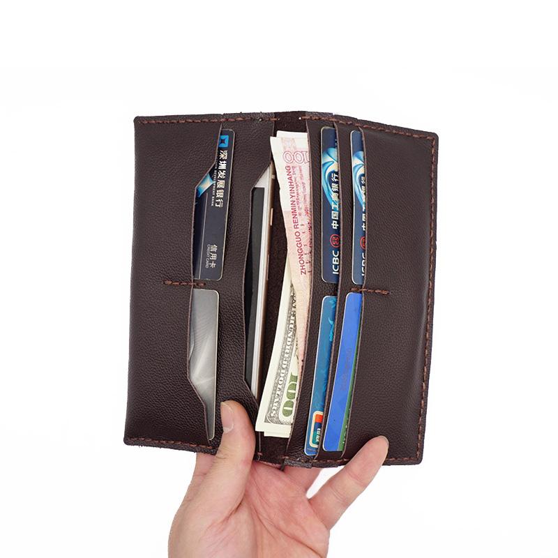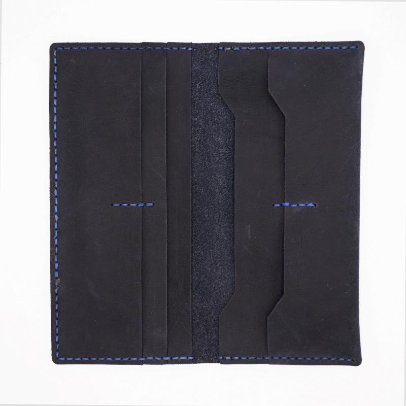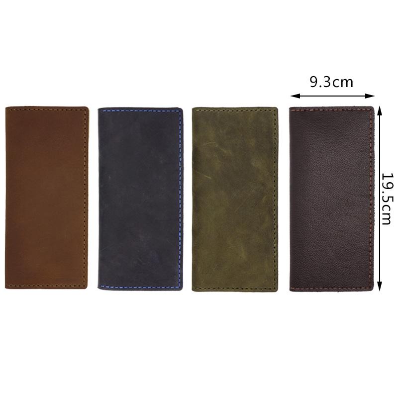Design: Handmade Slim Blue Leather Mens Bifold Long Wallet Lots Cards Long Wallet for Men