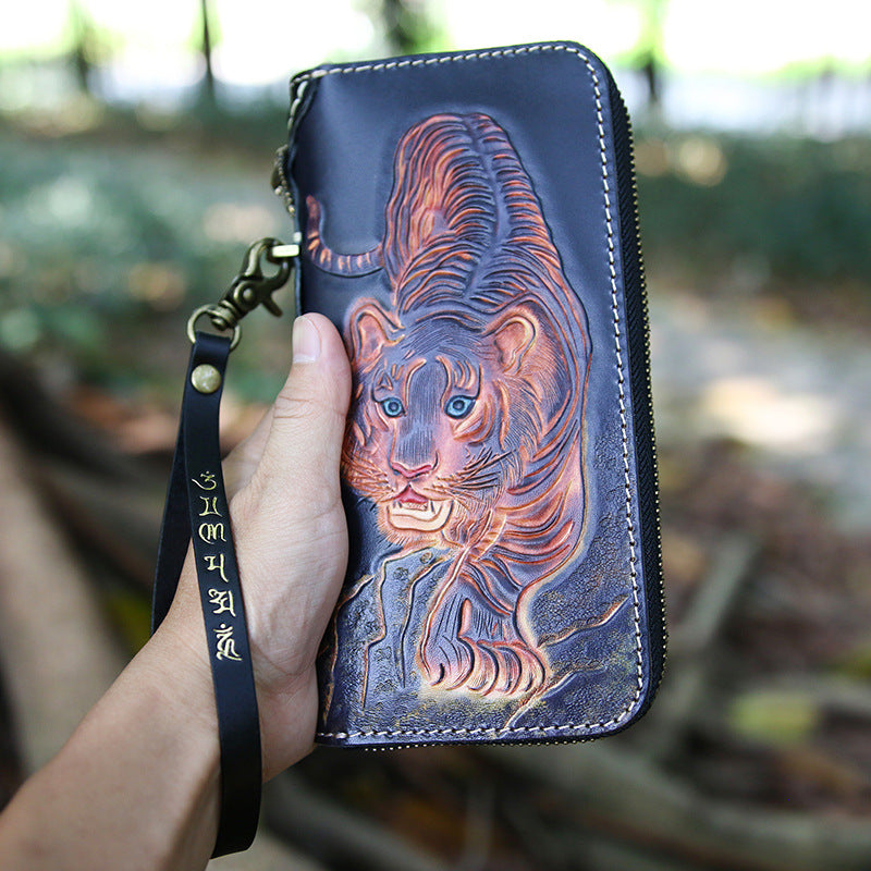 Style: Handmade Tooled Leather Biker Chain Wallet Mens Long Wallet with Chain for Men