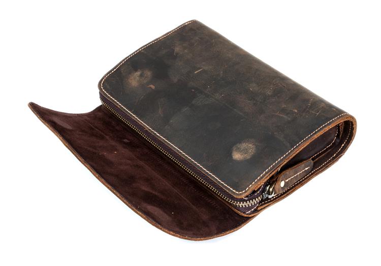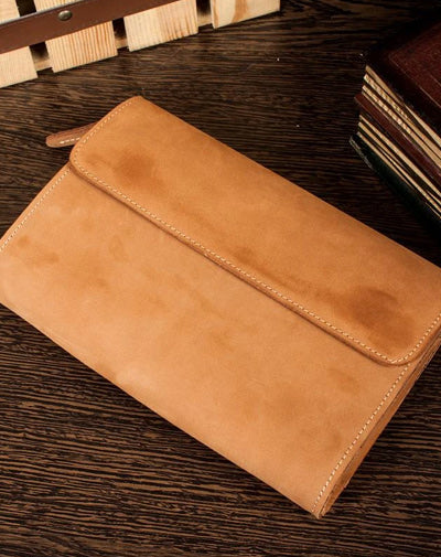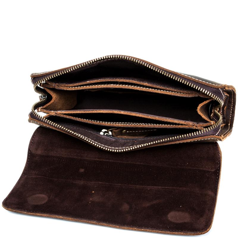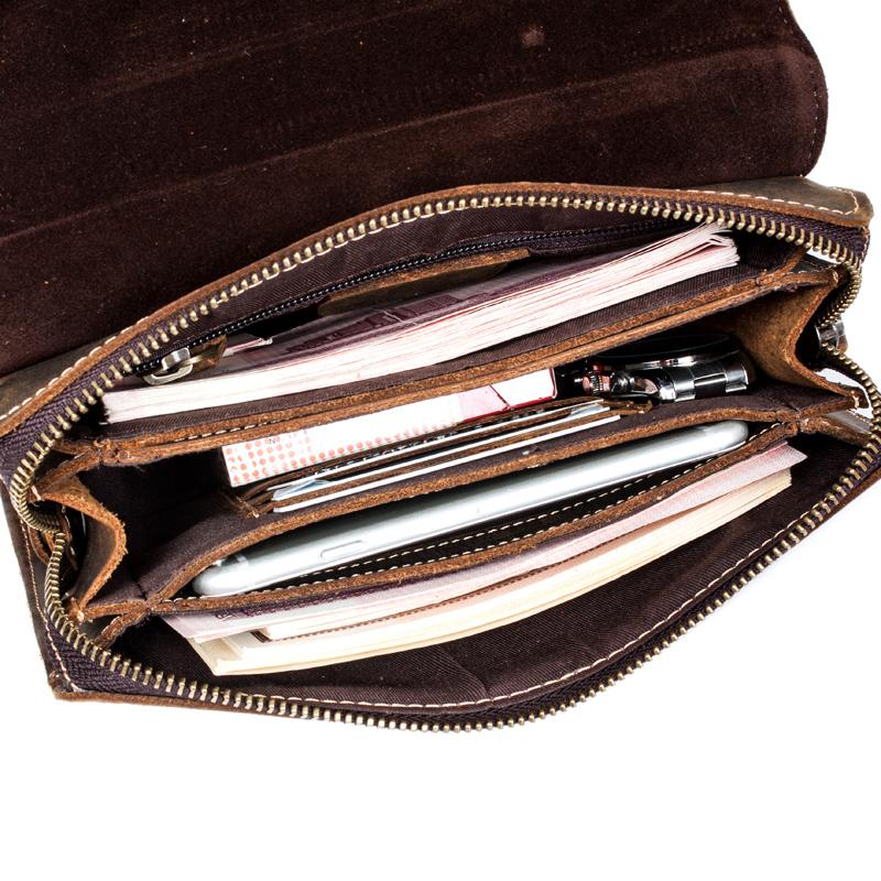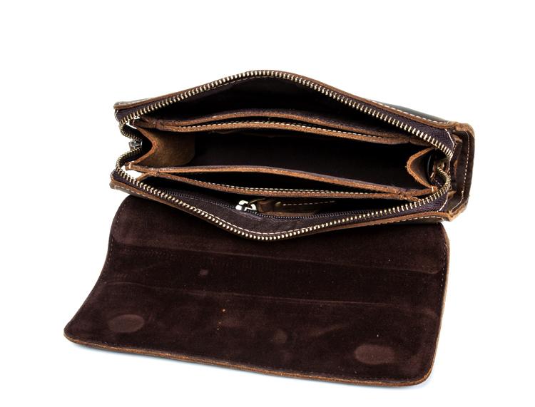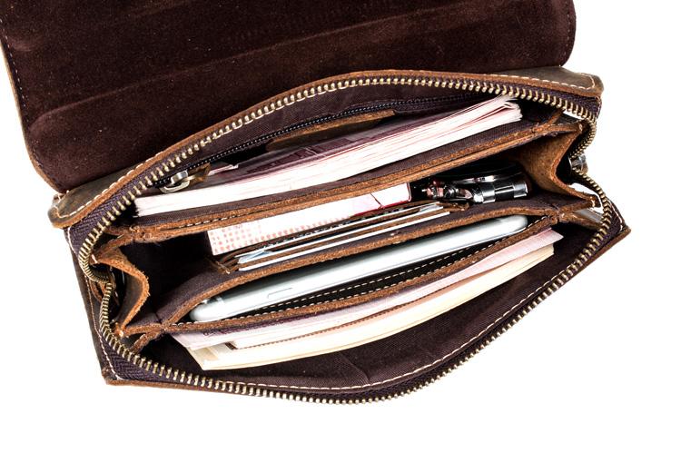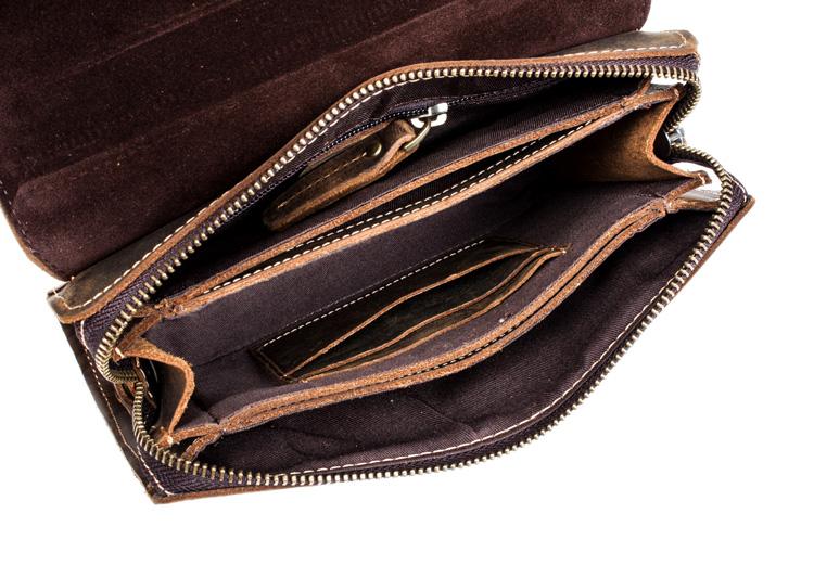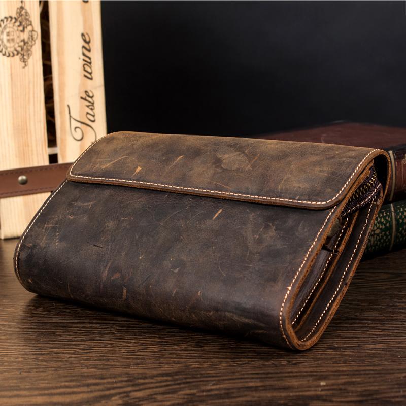 Style: Khaki Cool Mens long Wallet Wristlet Bag Clutch Bag Dark Brown Long Wallets for Men