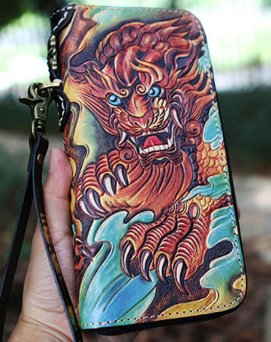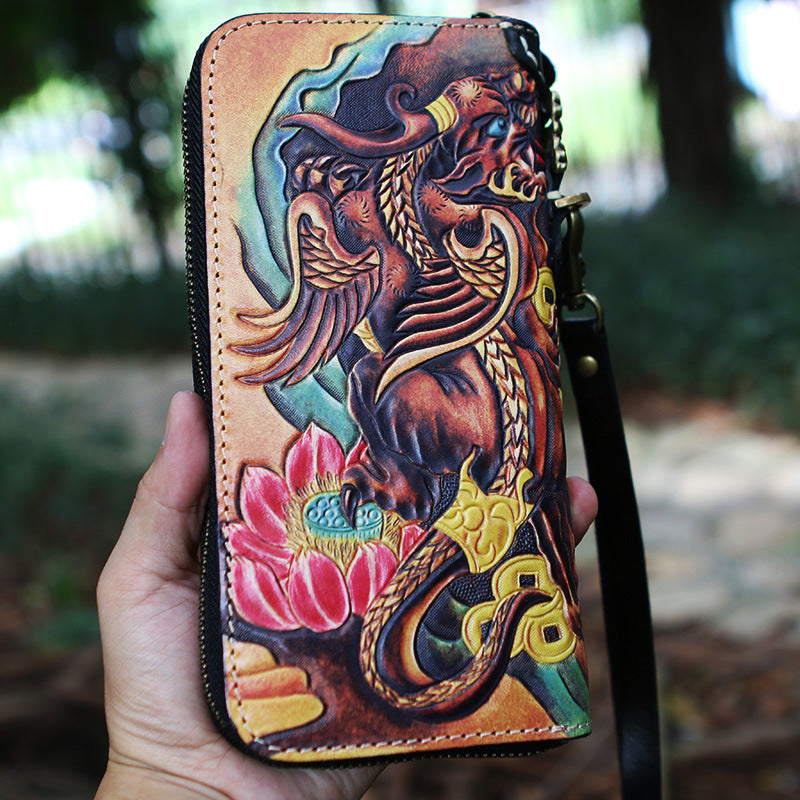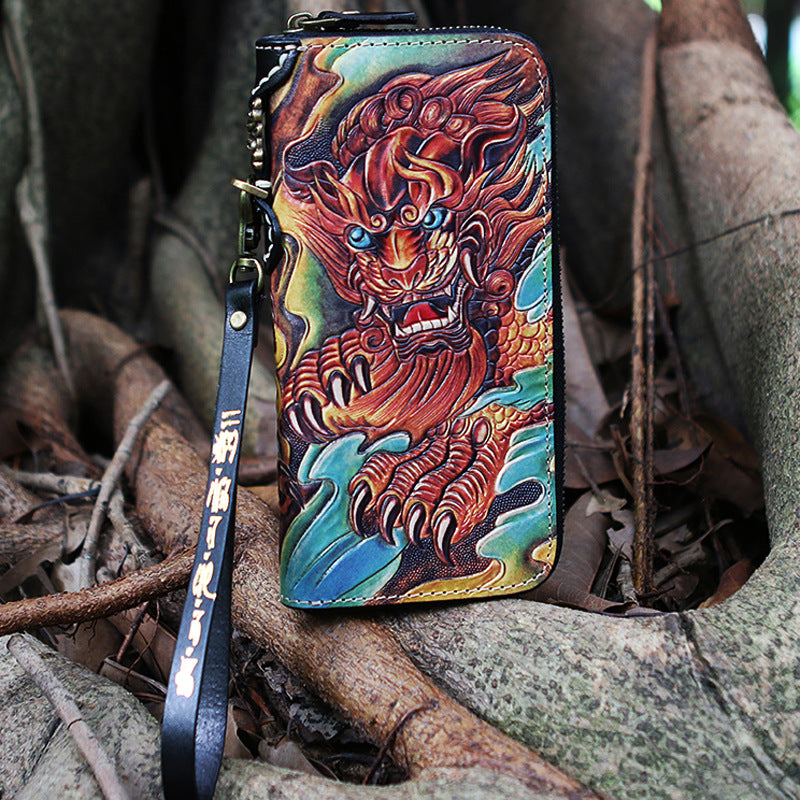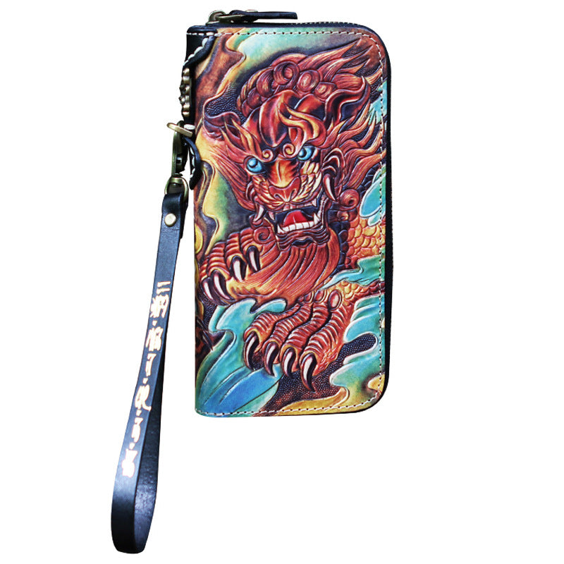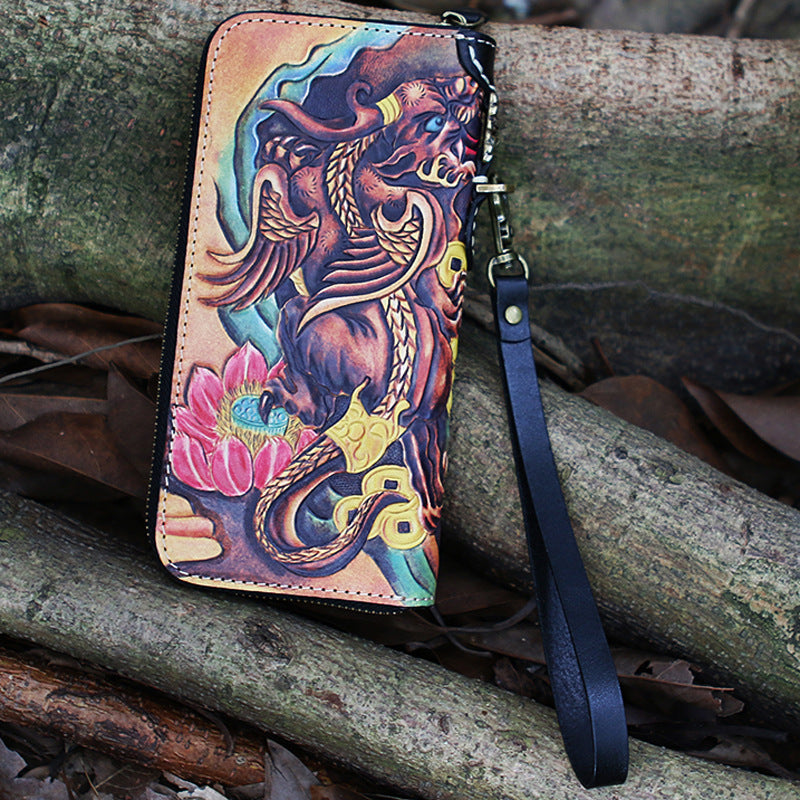 Design: Blue Wristlet Leather Wallets Handmade Zipper Long Wallets For Men