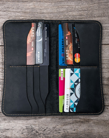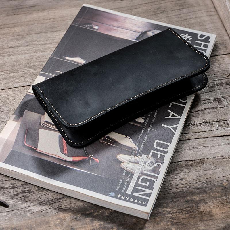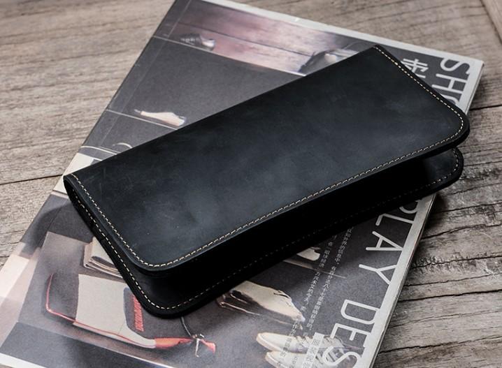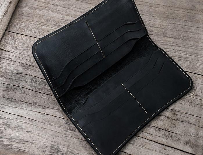 Style: Leather Long Wallets for men Black Bifold Men Long Wallet