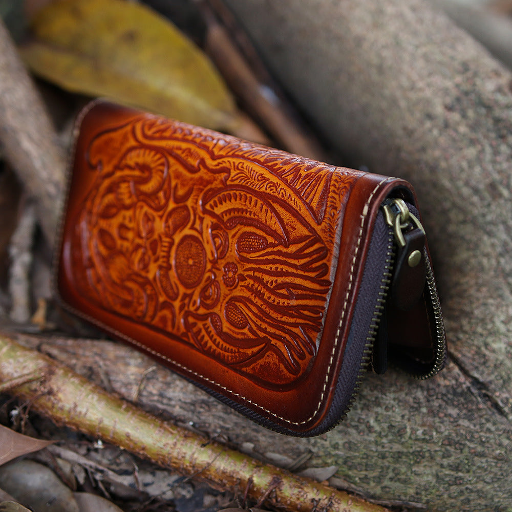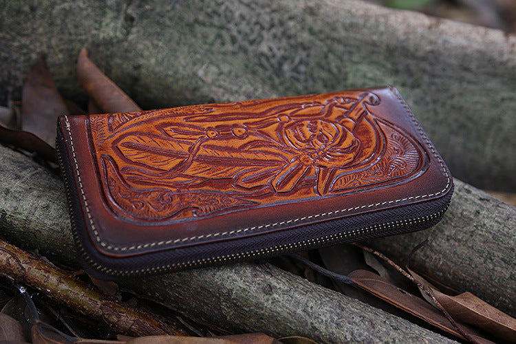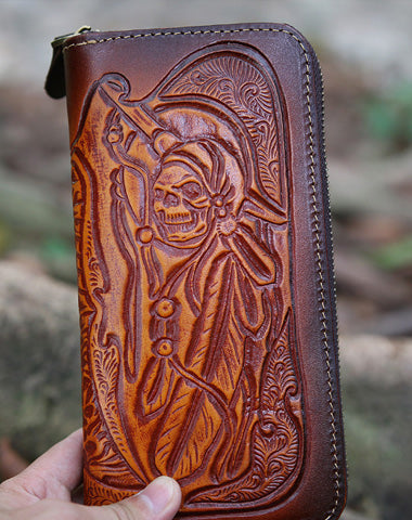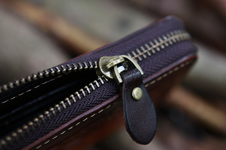 Design: Blue Wristlet Leather Wallets Handmade Zipper Long Wallets For Men